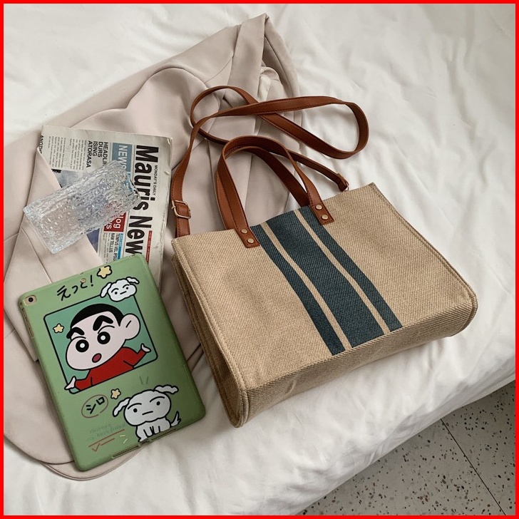 Gratis Ongkos Kirimreadytas Wanita Tas Totebag Tote Bag Kanvas Profesional Komuter Bergaris Sederhana Satu Bahu Tas Besa