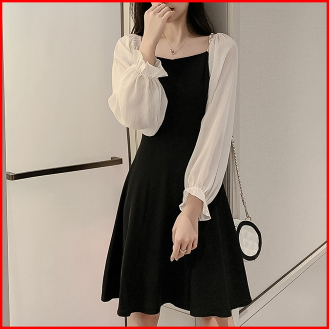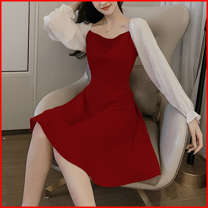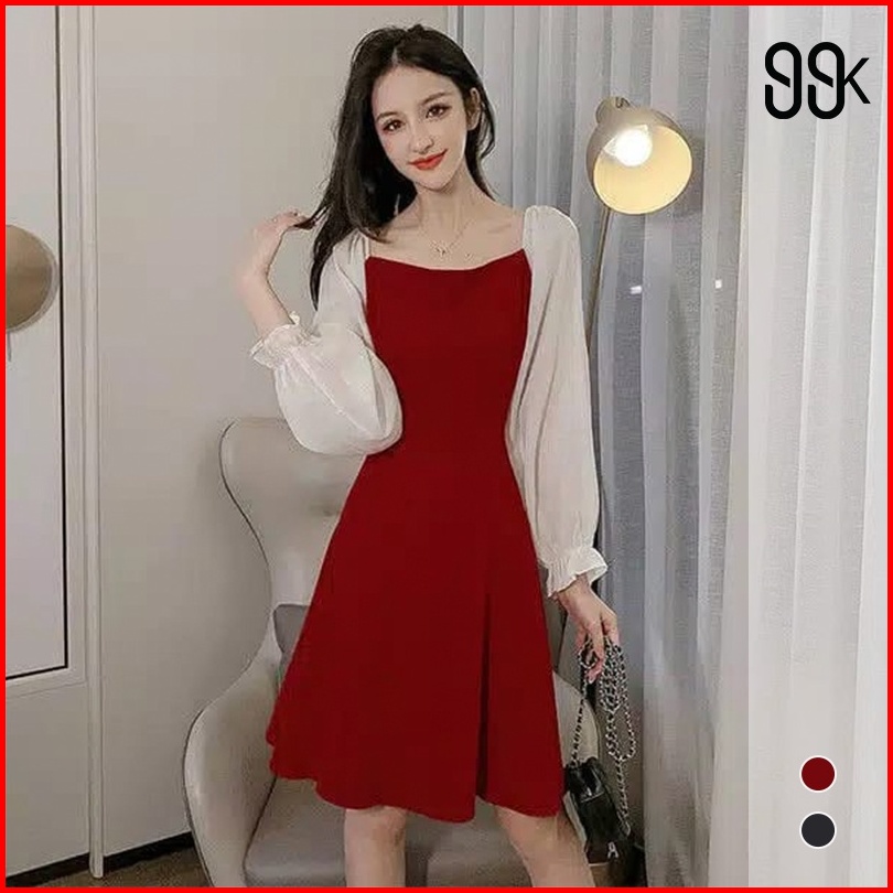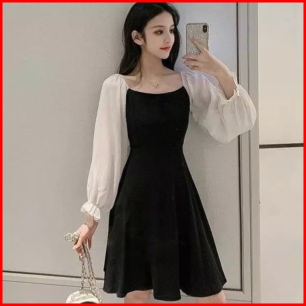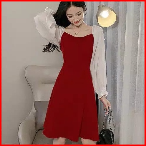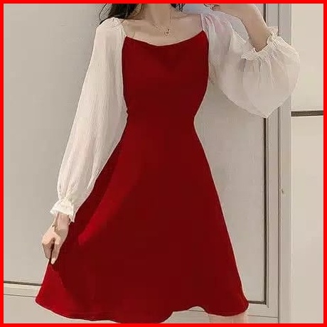 Long Sleeve Party Dress Wanita Lengan Panjang A-line 1153b S M L Xl