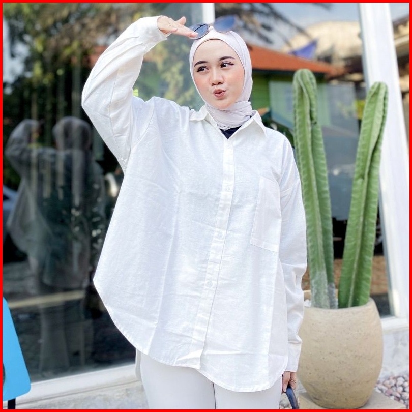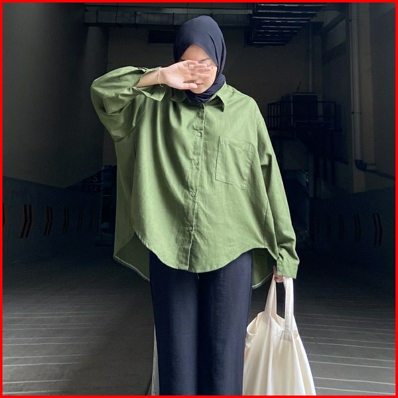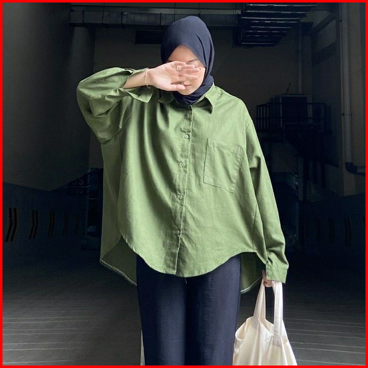 Kemeja Linen Oversize Oversize Shirt Linen Olivia Shirt Kemeja Basic Wanita Kemeja Wanita Oversize