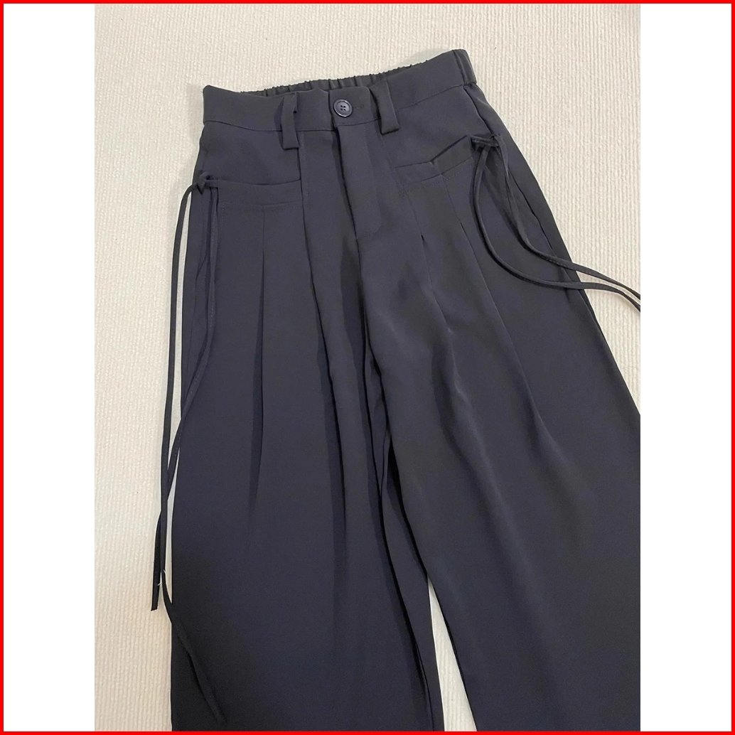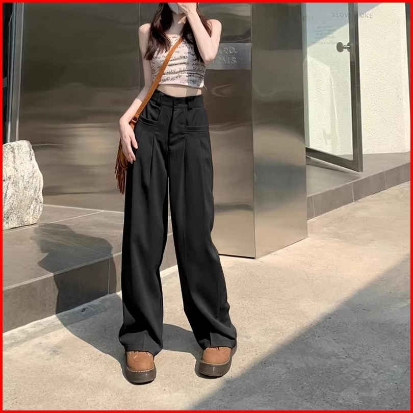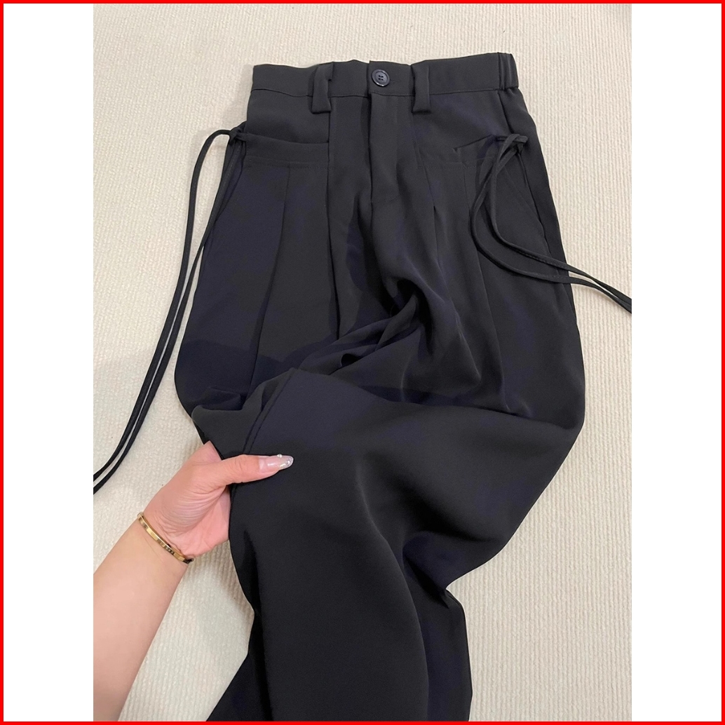 Kain Sutra Es Lembut Celana Setelan Kasual Hitam Pinggang Tinggi Gaya Korea Untuk Wanita-celana Setelan Wanita Terbaru