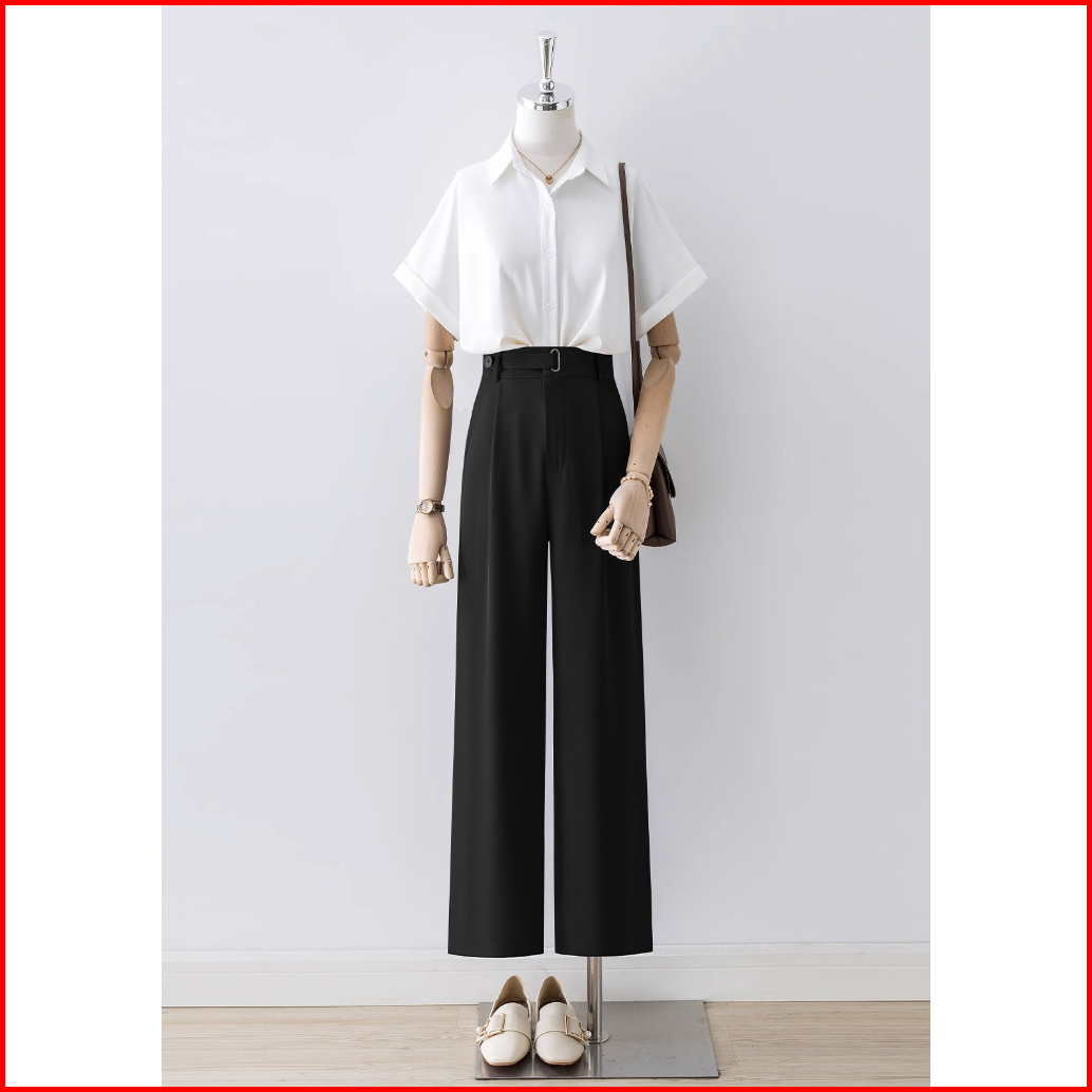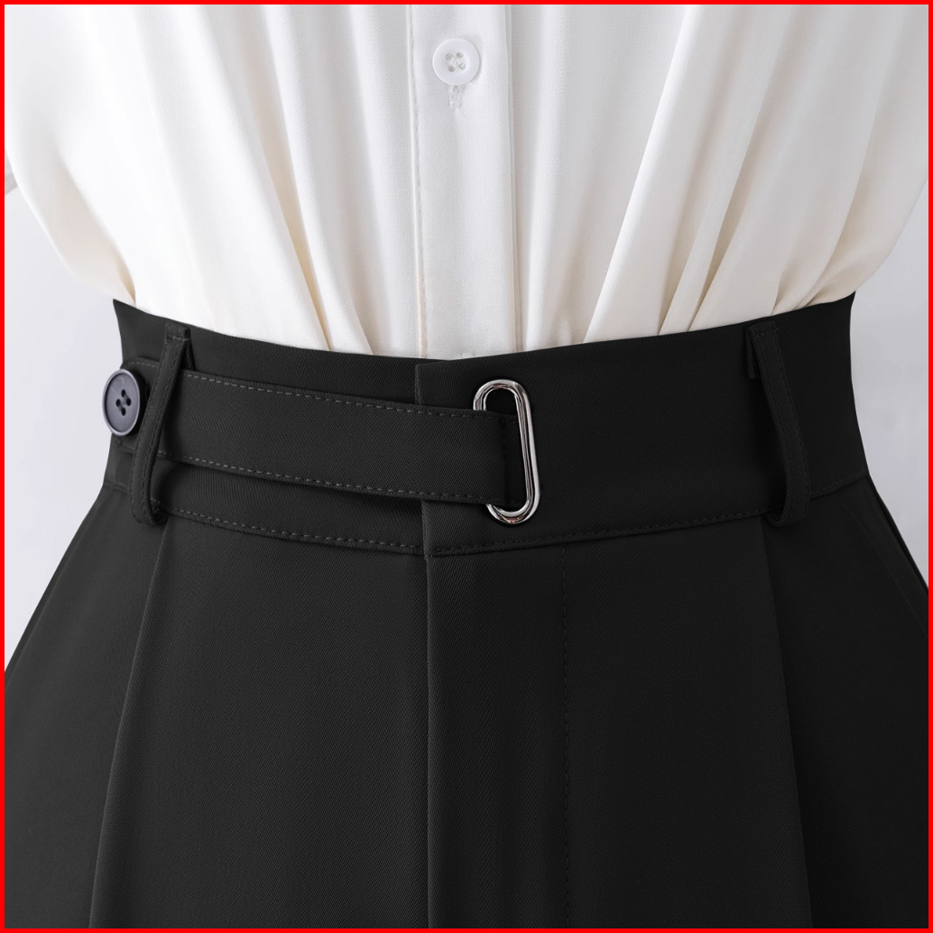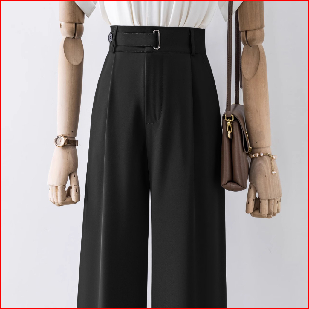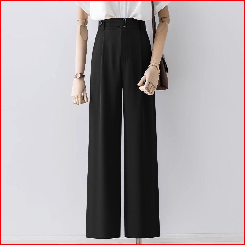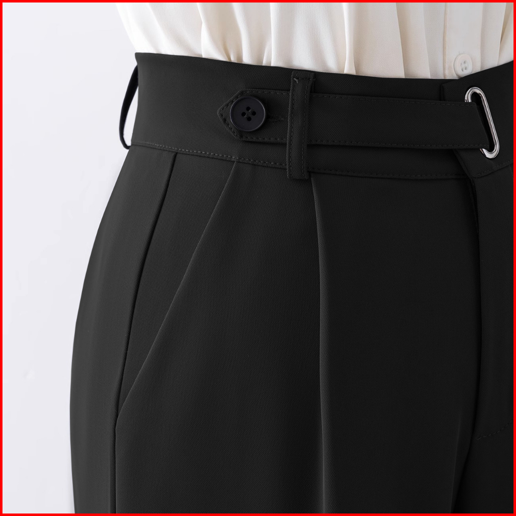 Celana Kasual Pinggang Tinggi Berwarna Hitam