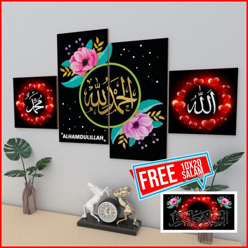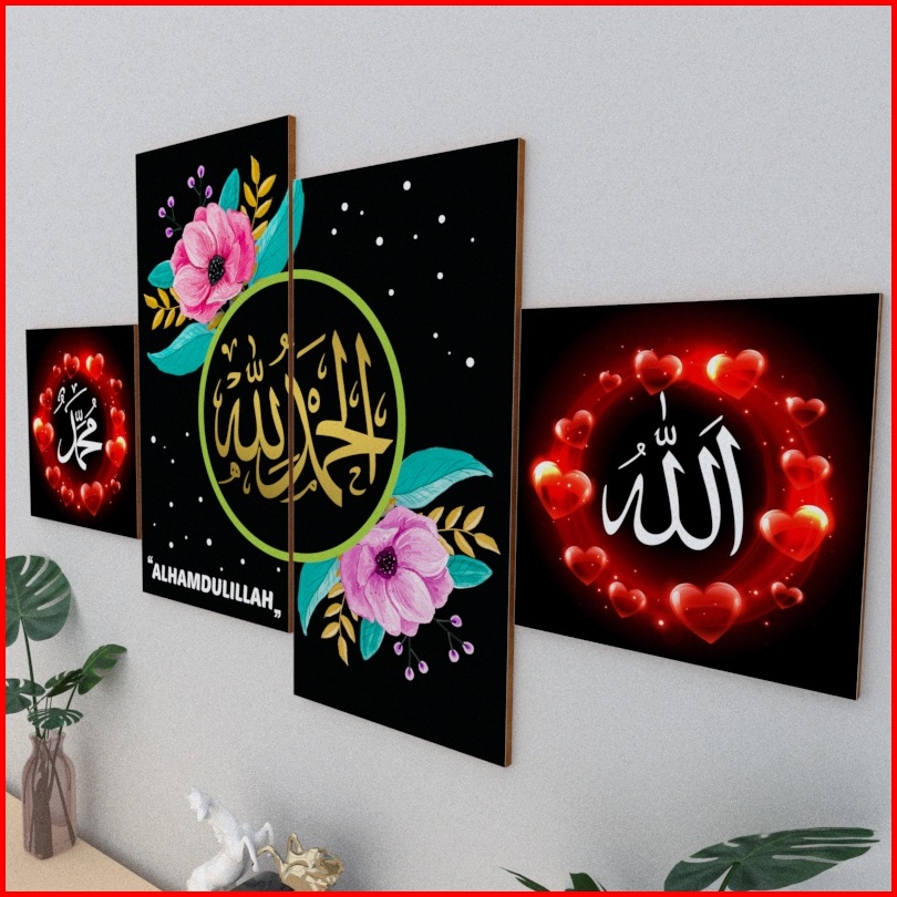 Hiasan Dinding Kaligrafi Wall Decor Pajangan Ruang Tamu Poster Kayu Set Kaligrafi Mdf 7mm