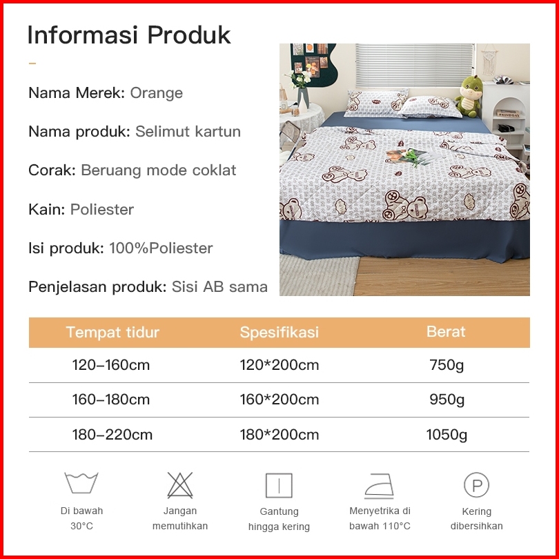 Orange Selimut Bedcover Motif Polyester Ukuran 120x200cm 160x200cm 180x200cm