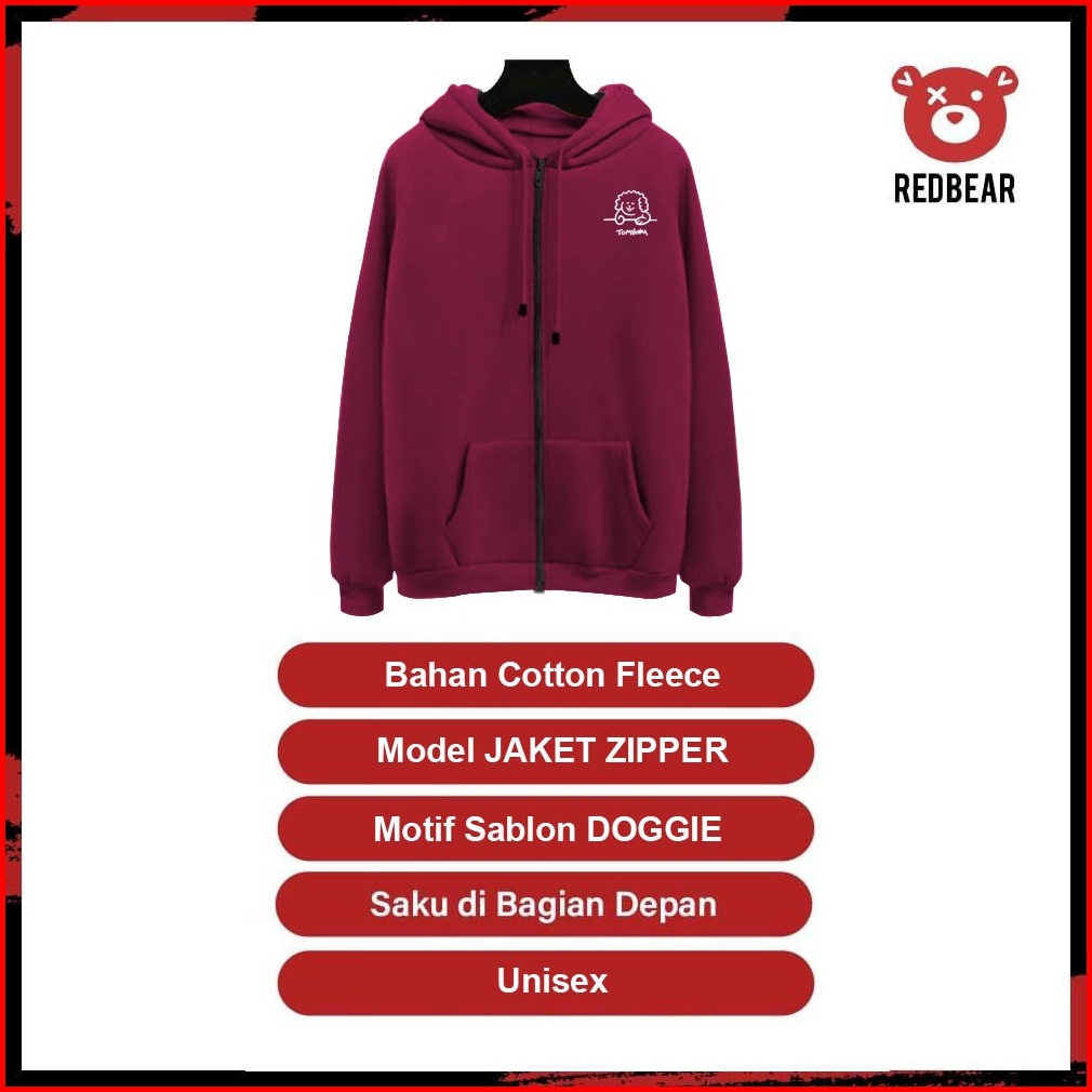 Redbear Zipper Doggie Sablon M-xxl Wanita Pria
