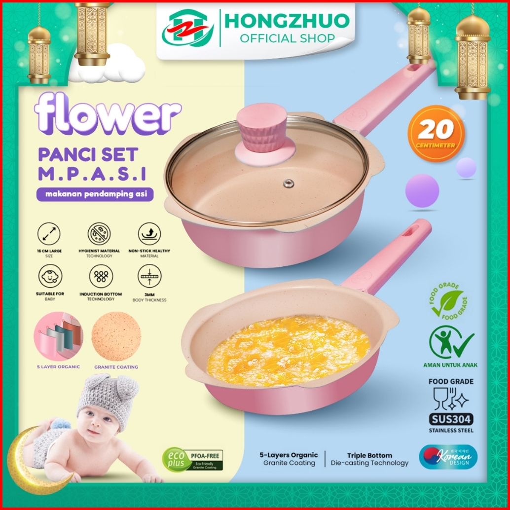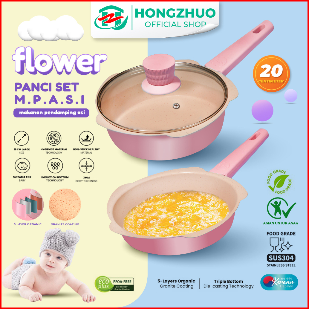 Hongzhuo Sakura Panci Set Bayi 2pcs Granit Wajan Keramik Food Grade Aman Untuk Mpasi Balita