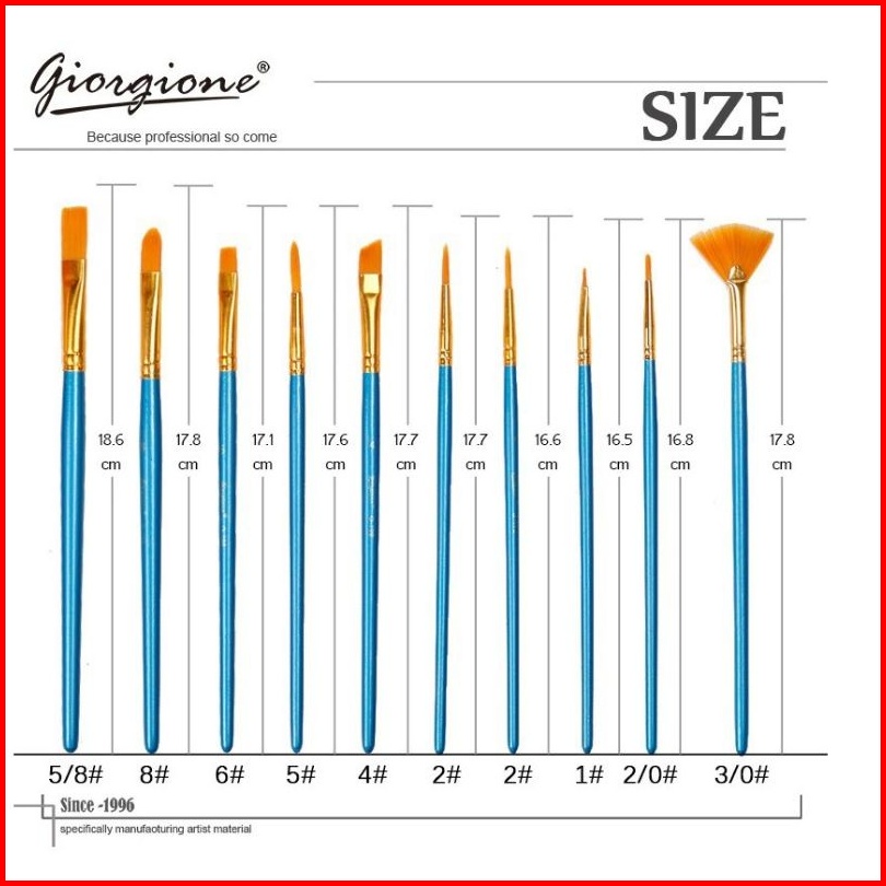 Giorgione Brush Set 10 Pcs G-198h Kuas Lukis Nylon Ekonomis