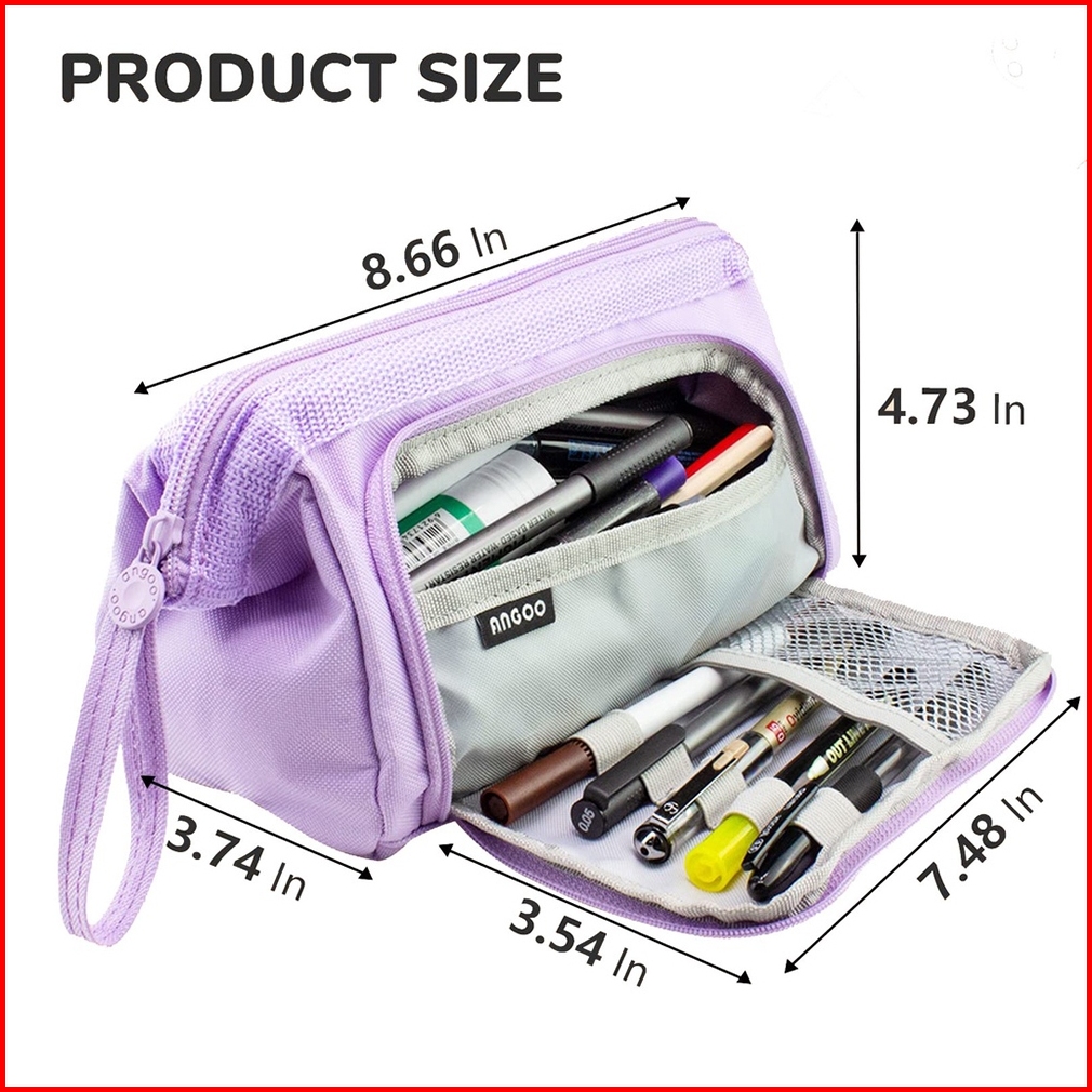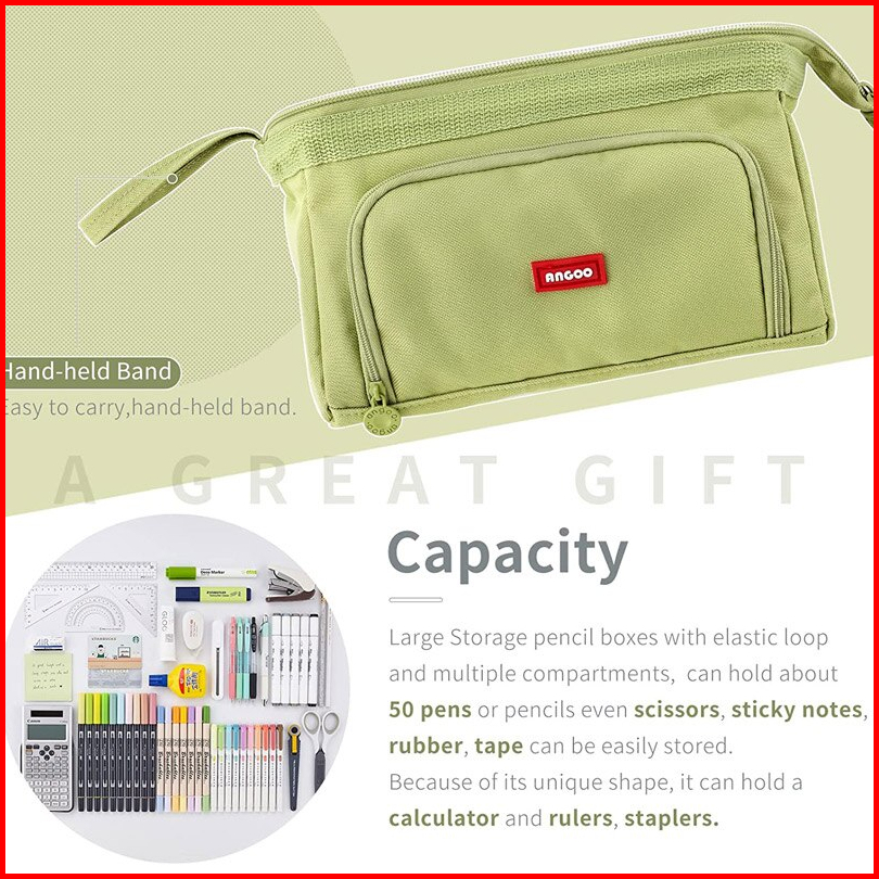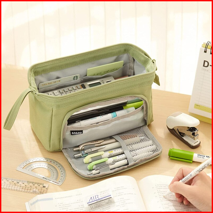 Angoo Super Large Capacity Pencil Case Kawaii Korean Pencil Cases Aesthetic Stationery Office Desk Storage Bag For Girls