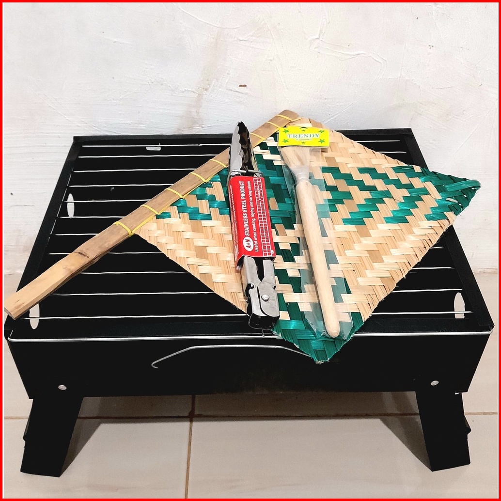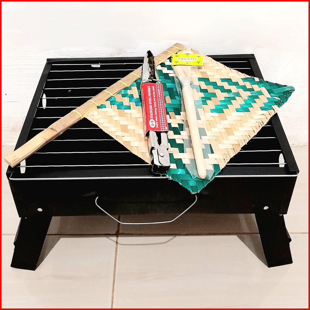 Bakaran Sate Ayam Sosis Jagung Free Kuas Kipas Capitan Stainless Panggangan Portable Arang