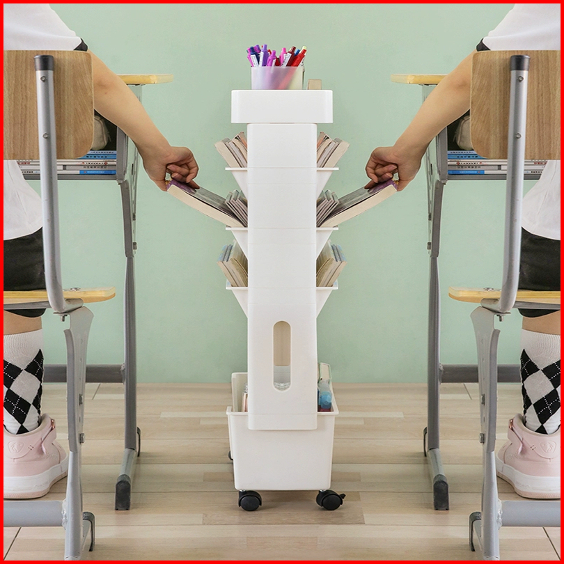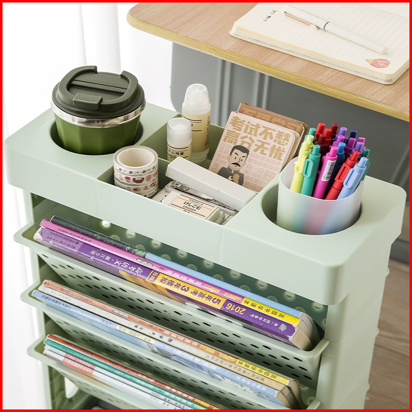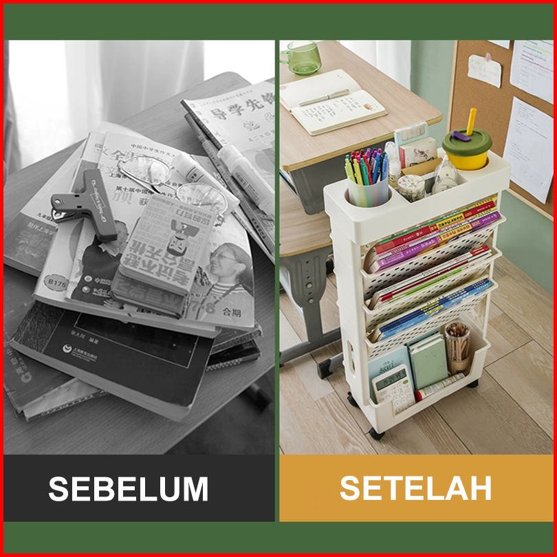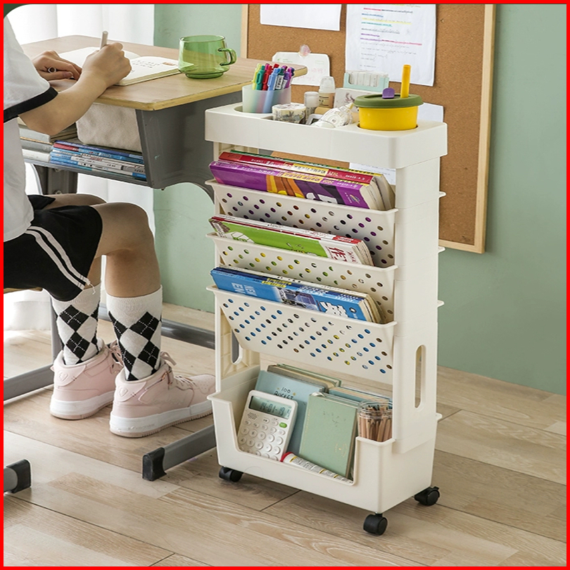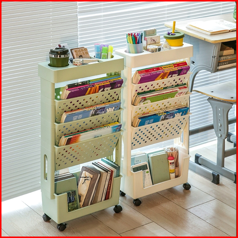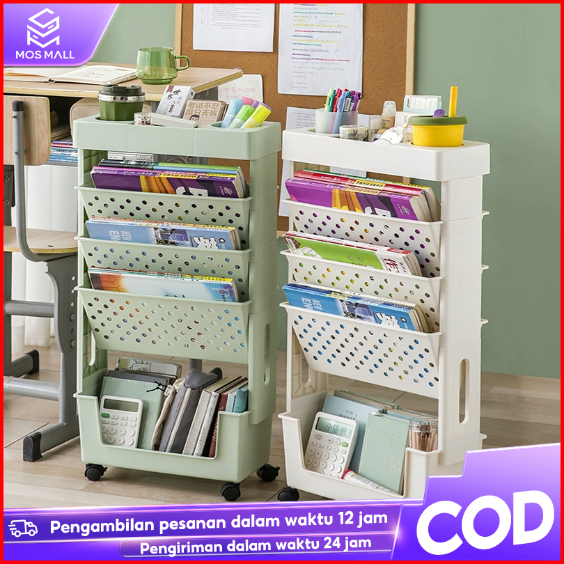 Rak Buku Portable Serbaguna 5 Susun Rak Buku Roda Rak Troli Rak Susun Dokumen Penyimpanan Alat Kantor Dekstop Organizer