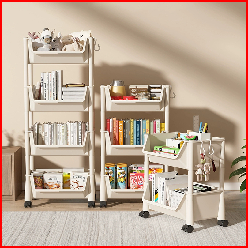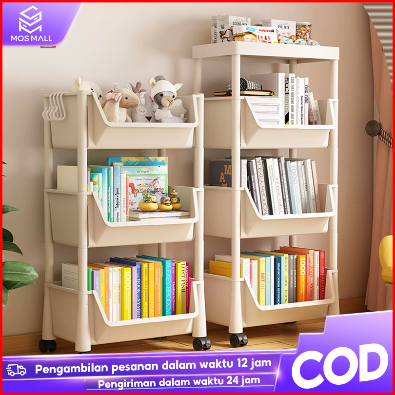 Rak Buku Portable Serbaguna 4 Susun Rak Penyimpanan Mainan Rak Susun Tingkat Penyimpanan Mainan Anak Rak Buku Serbaguna
