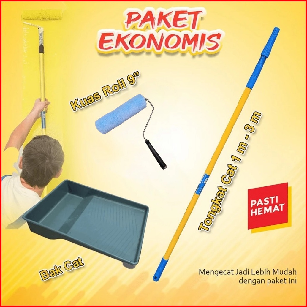 Paket Ekonomis Alat Cat Tongkat Kuas Roll Dan Bak Cat Murah Promo Kuas Roll Bak Cat Extension
