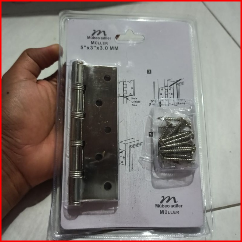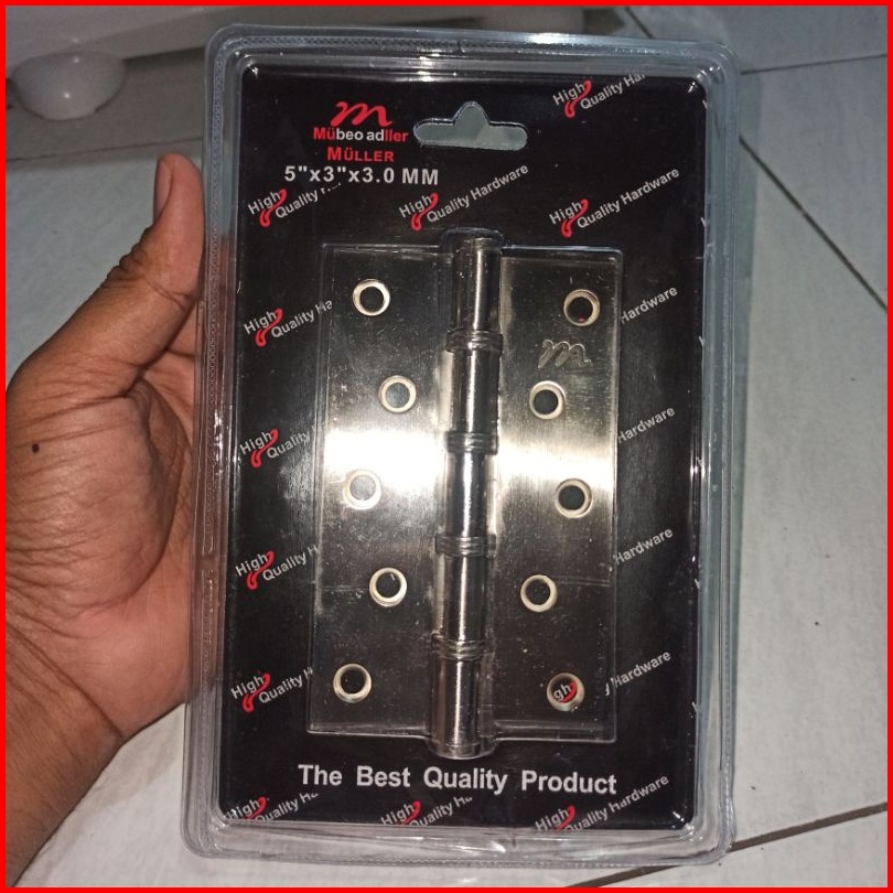 Engsel Pintu Rumah Muller Lobang 5 Inch X 3 Muler Satin Putih 660 Gram Tebal 3 Mm 7 6 Cm X 12 6 Cm Baja