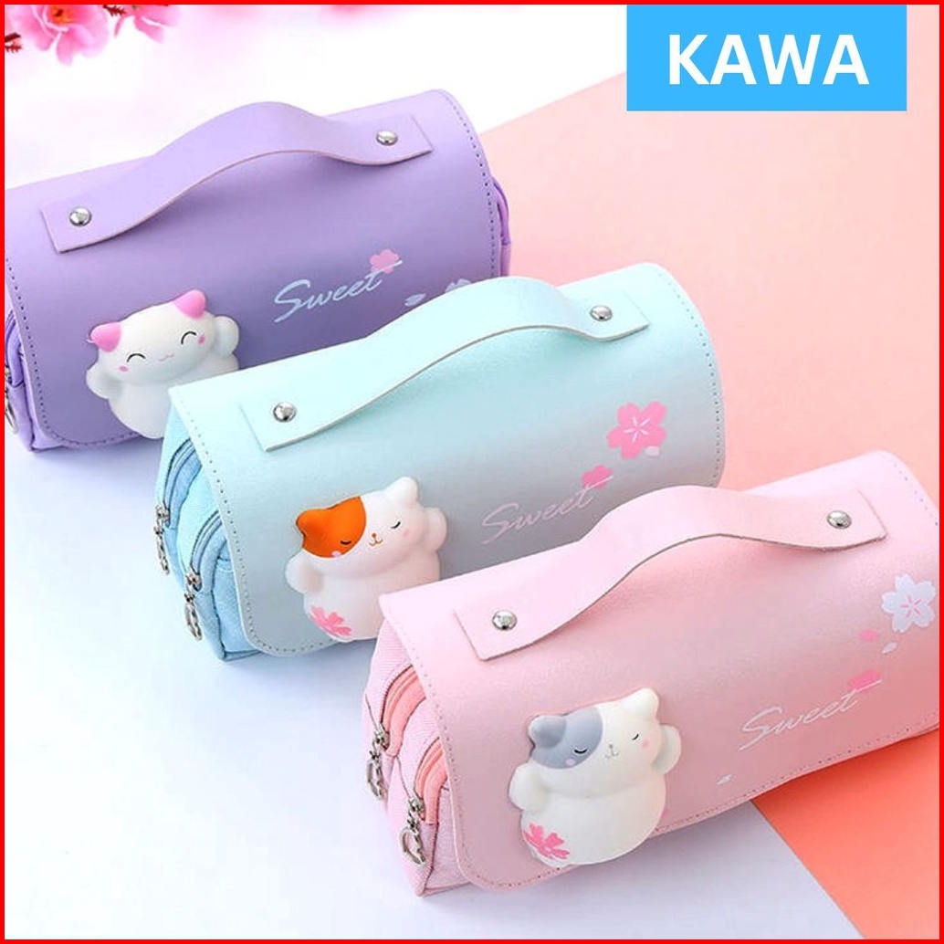 Kawa Kotak Pensil Squishy Lucu Kain Pencil Case Aesthetic Multifungsi