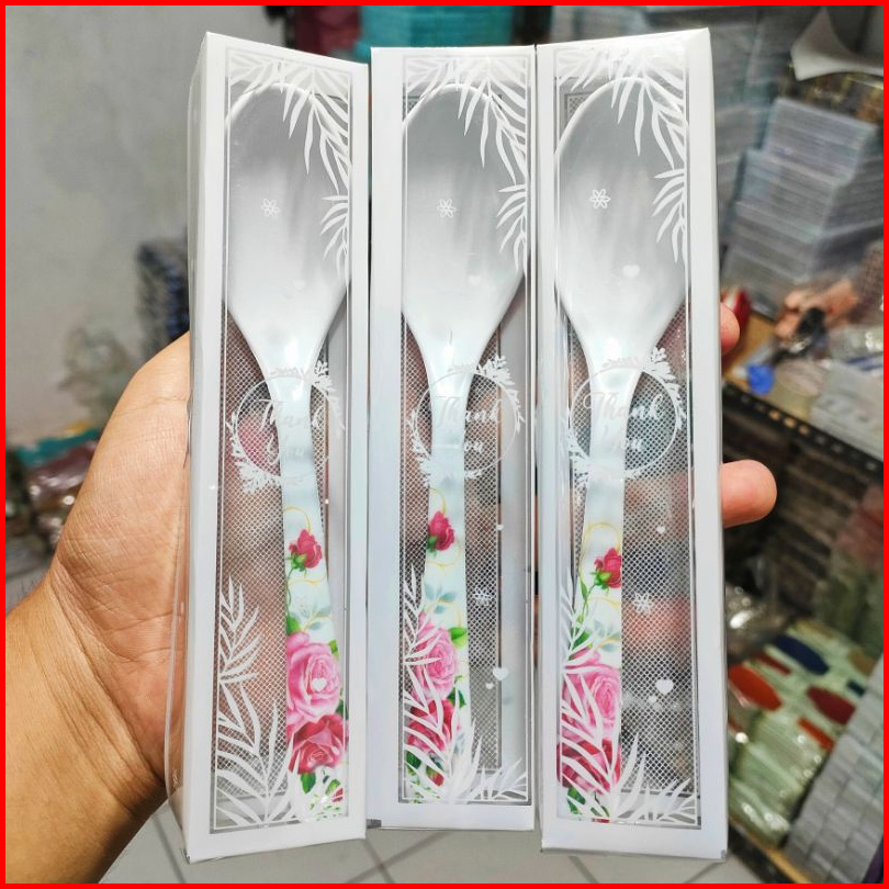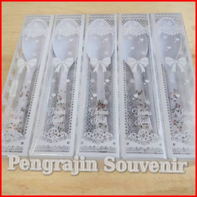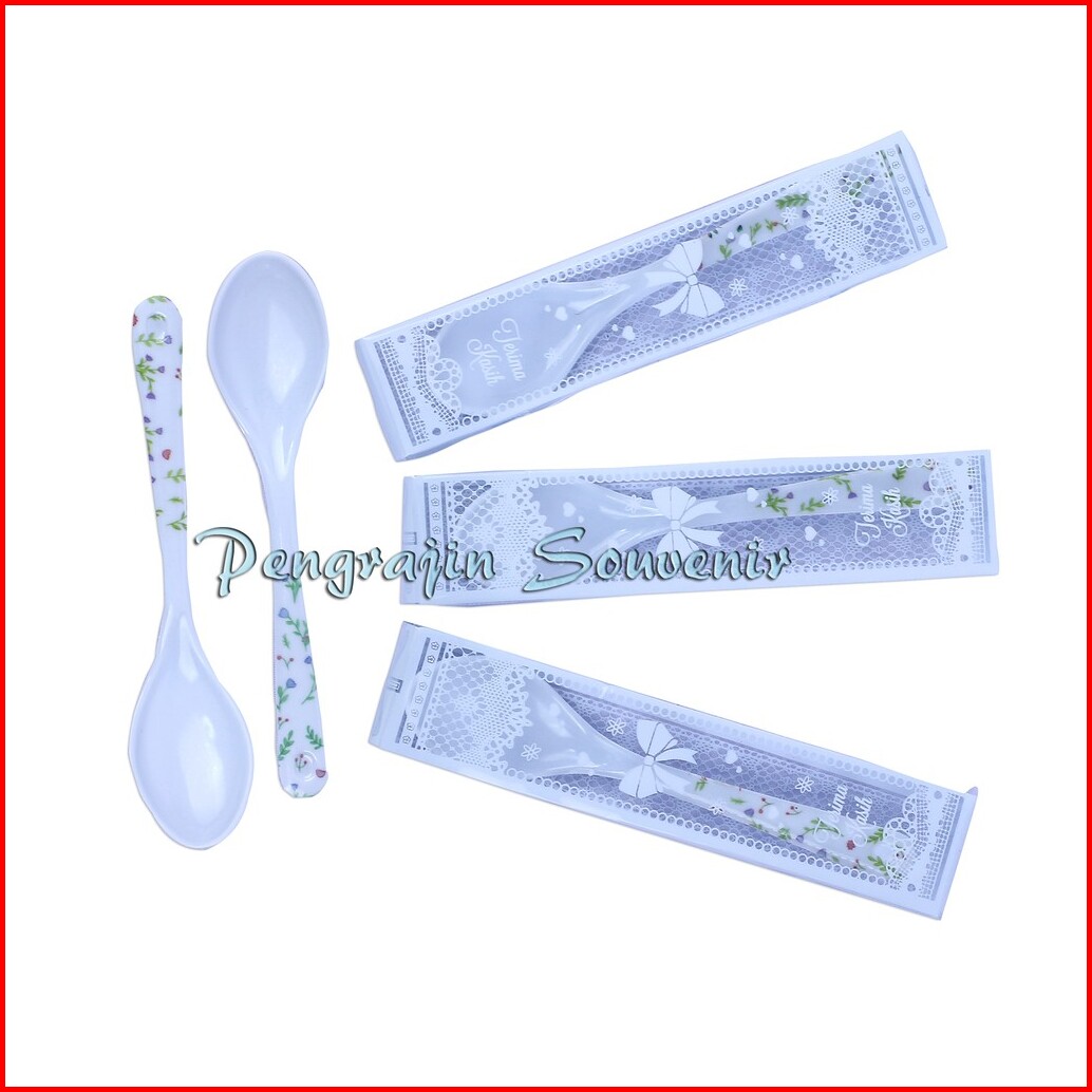 50 Pcs Souvenir Pernikahan Sendok Putih Melamin Kemas Mika Motif Souvenir Hadiah Ulang Tahun