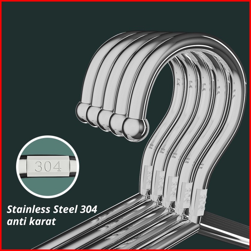 Hanger Gantungan Pakaian Stainless Steel 304 Anti Karat Set 10pcs
