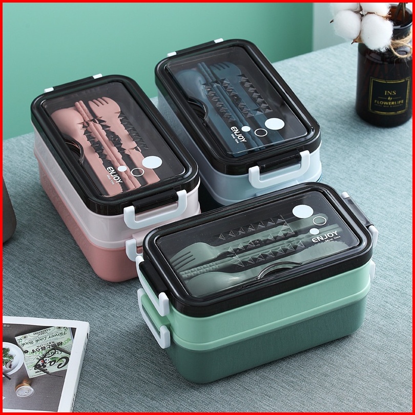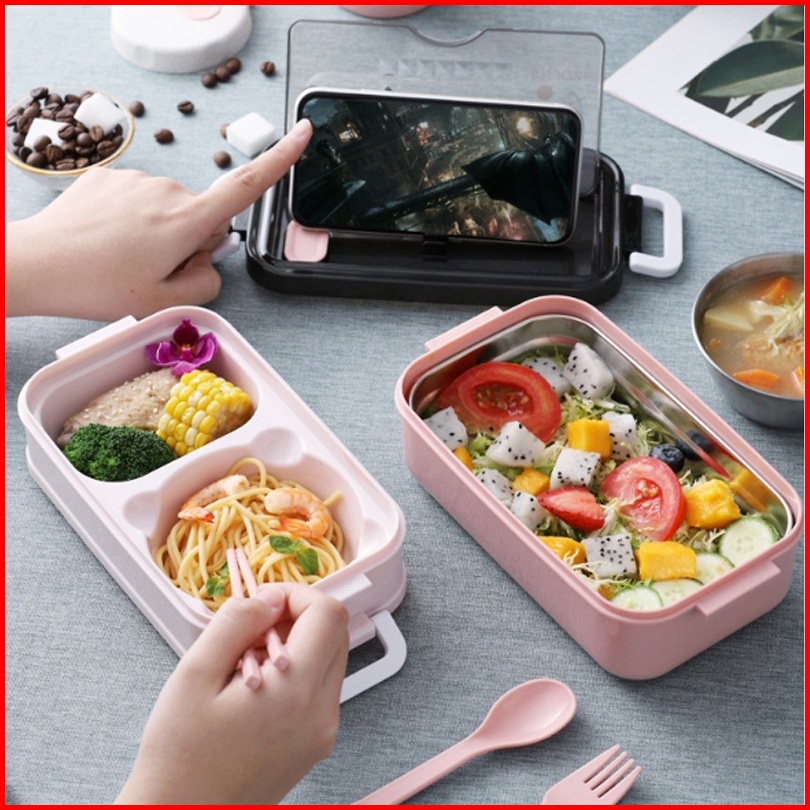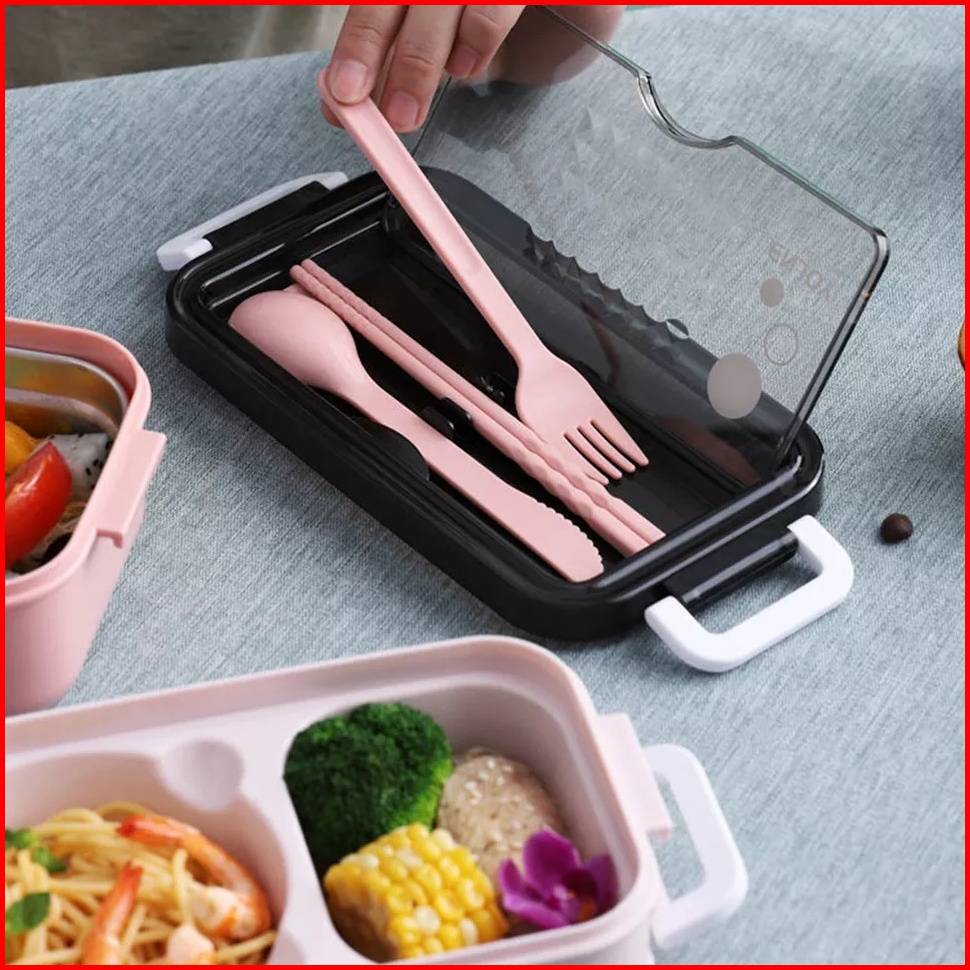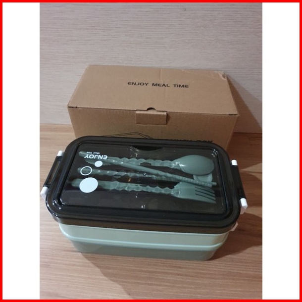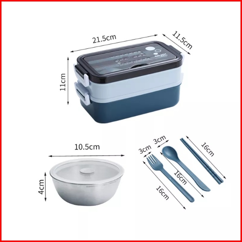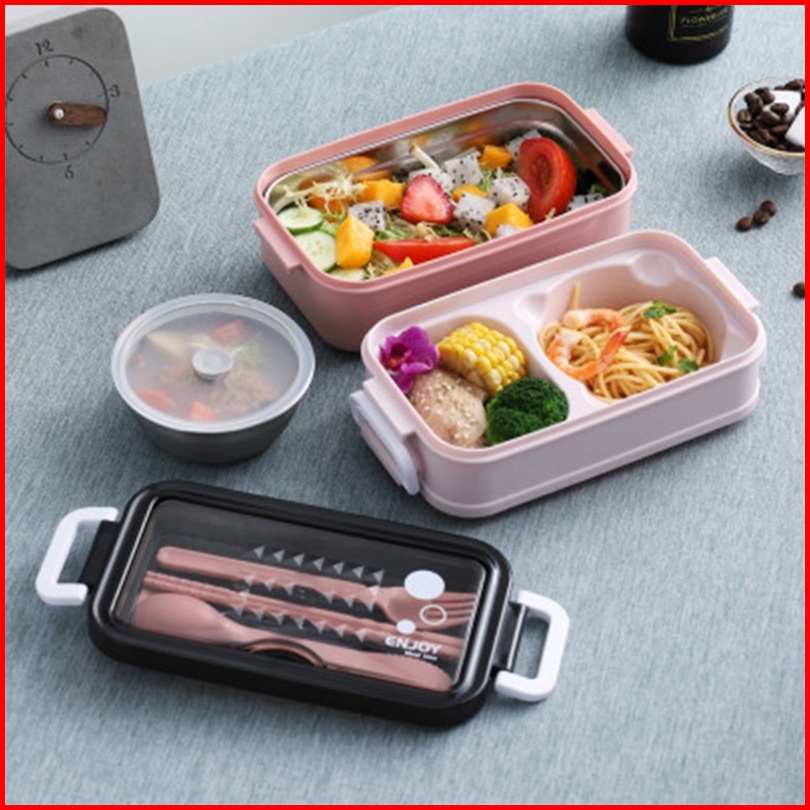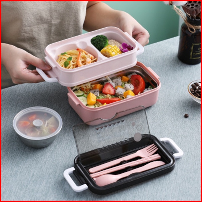 Bpa Free Lunch Box Stainless 2susun Dilengkapi Mangkok Kuah Stainless Dan Set Alat Makan