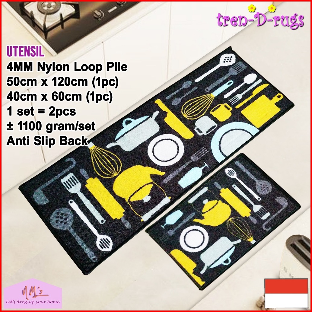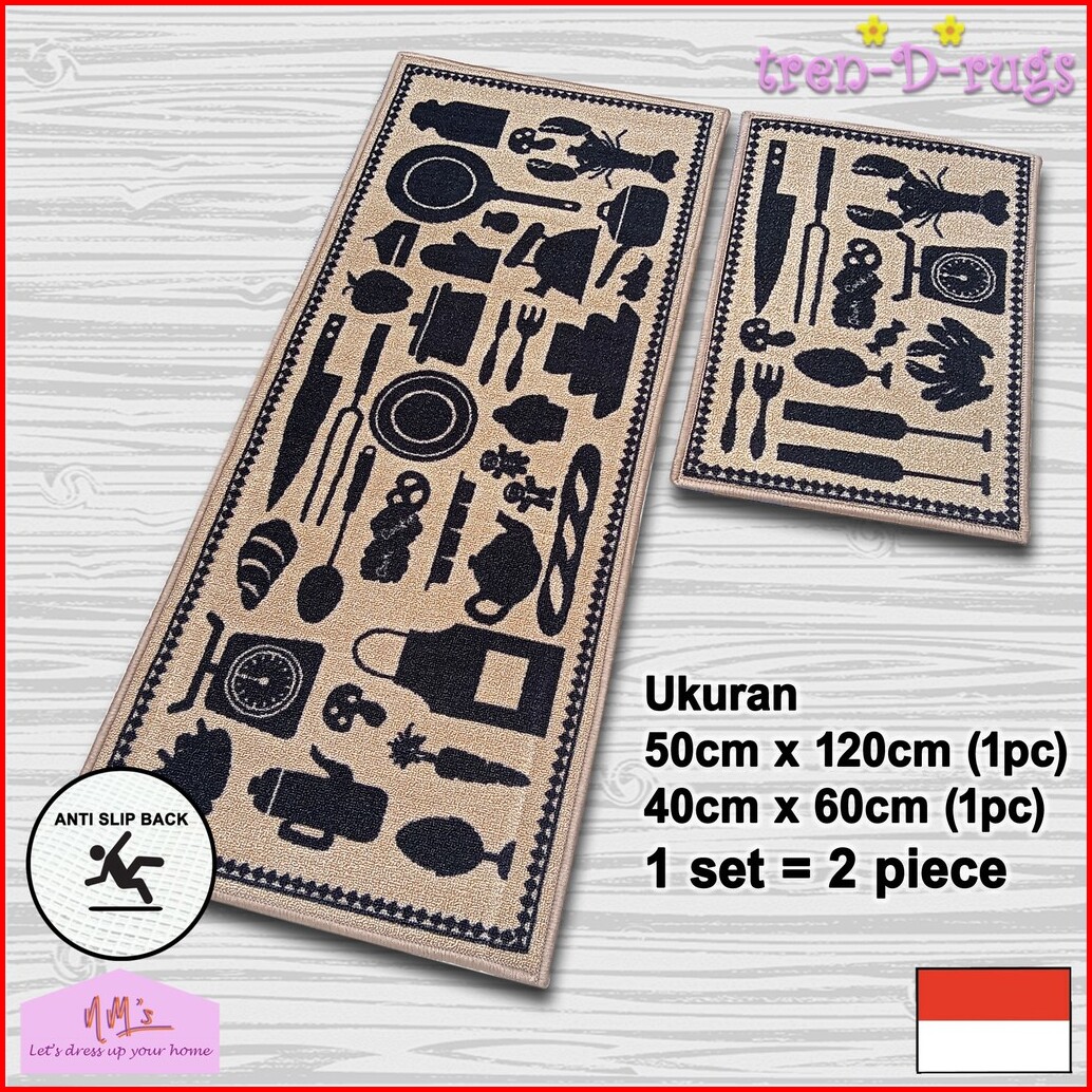 Tren-d-rugs Keset Kaki Utensil Dapur Panjang Lorong Bulu Anti Slip Murah Kitchen Mat 1 Set 2pcs -nms