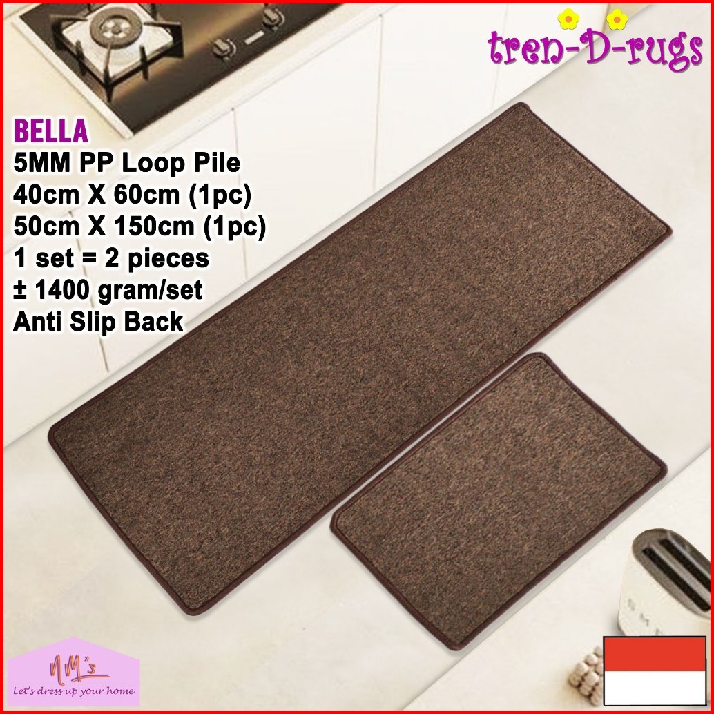 Tren-d-rugs Keset Kaki Polos Lantai Dapur Panjang Lorong Runner Kitchen Mat Anti Slip 1 Set Isi 2pcs - Nms