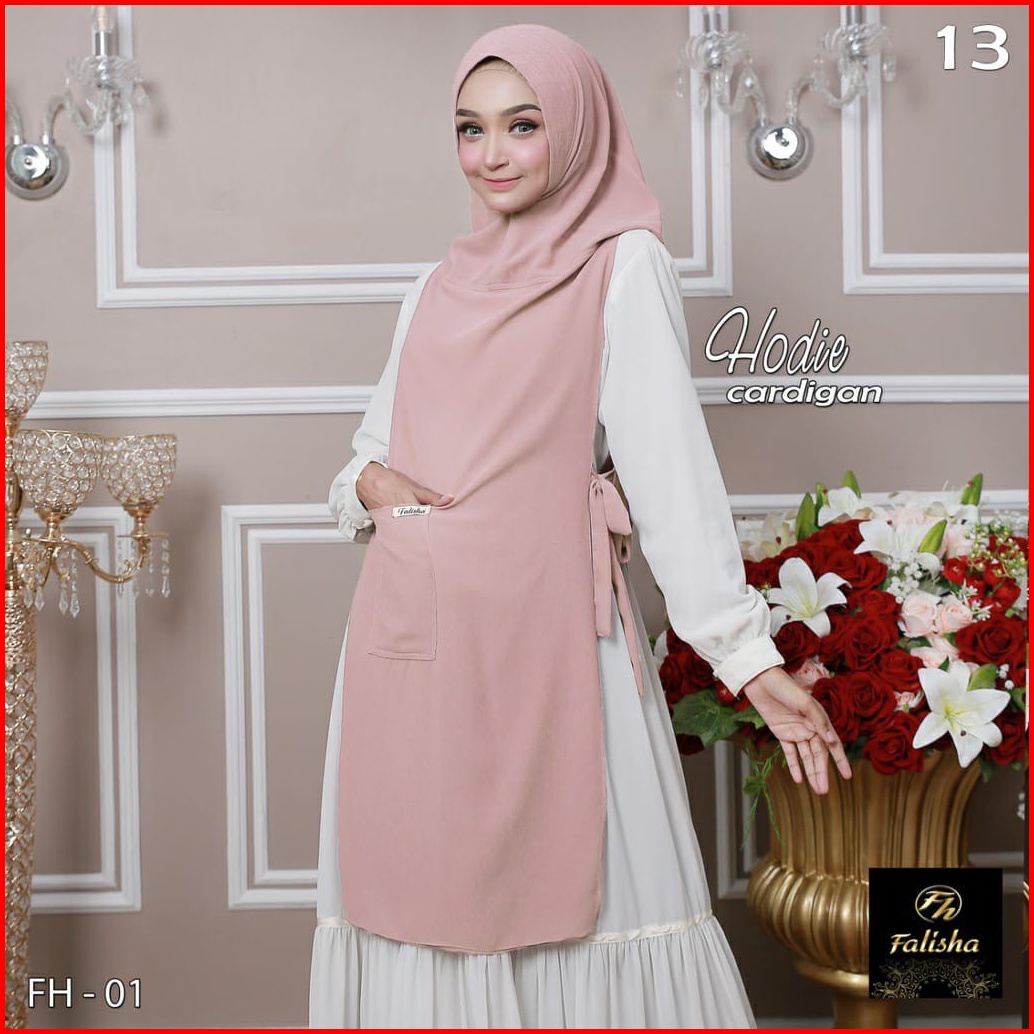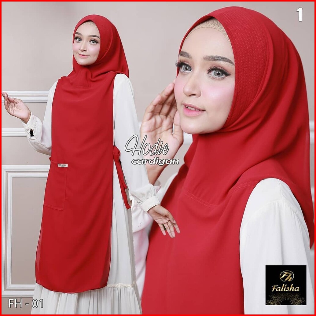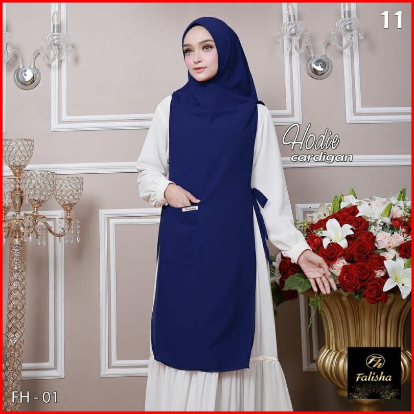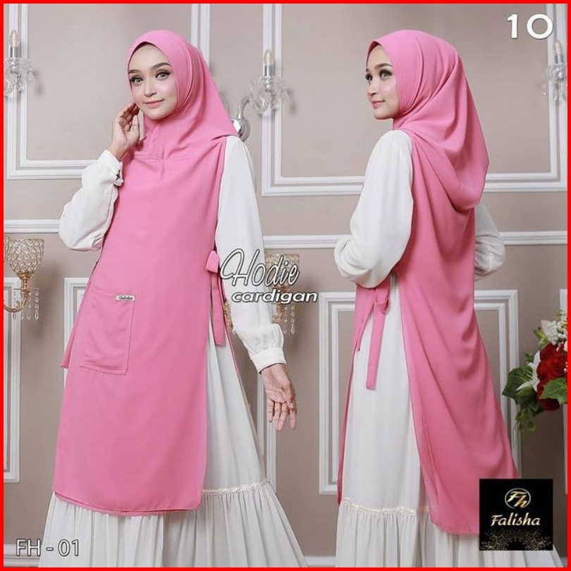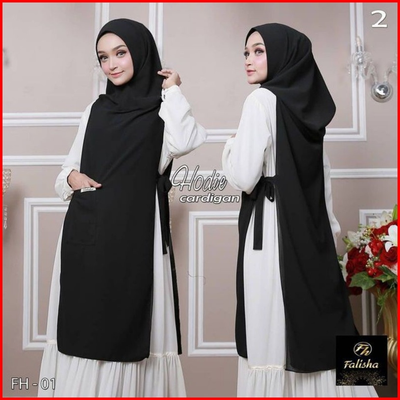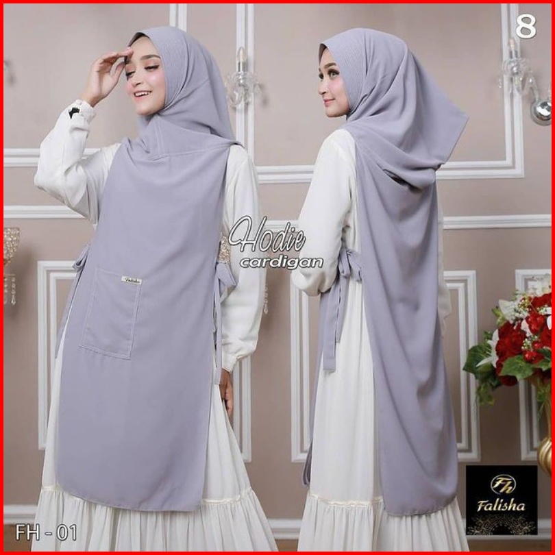 Jilbab Khimar Hoodie Cardigan Hijab Bergo Ceruty Pet Antem 2 Layer Tali Samping Saku