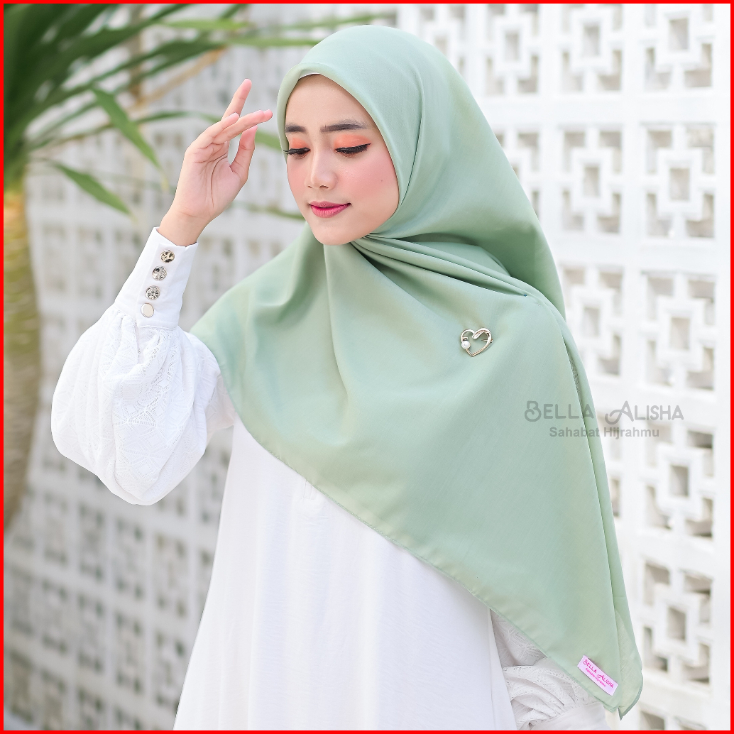 Bella Alisha - Kerudung Segiempat Voal Olive Plain