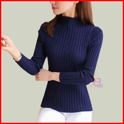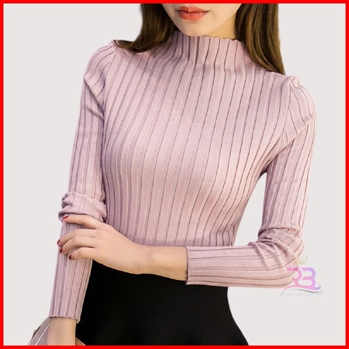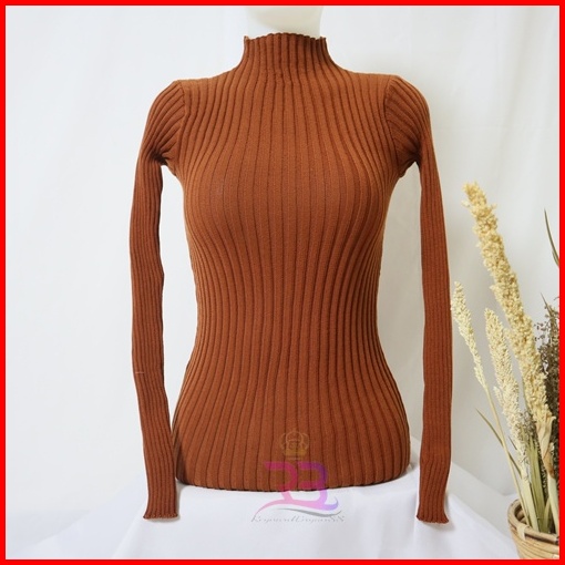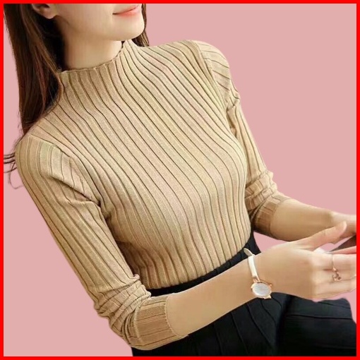 Atasan Rajut Turtleneck Wanita Turtle Neck Jalur Besar Terbaru Inner Rajut Wanita Baju Dalaman Turtleneck Knit Rajut Man