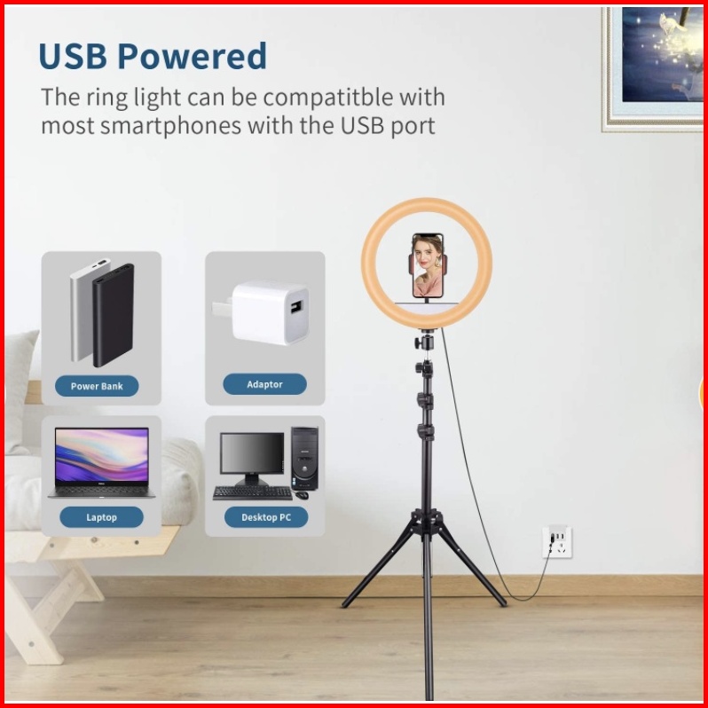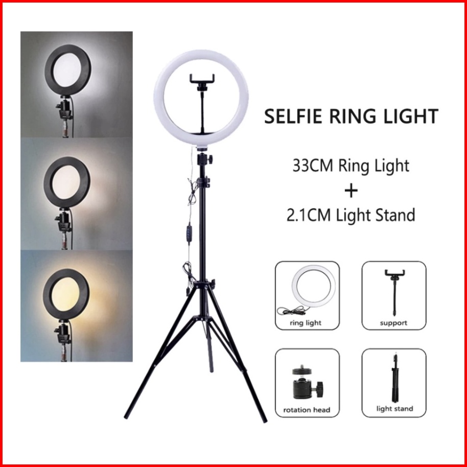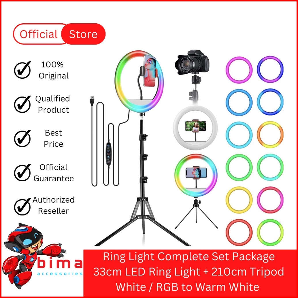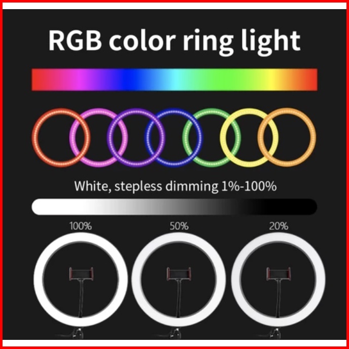 Lampu Ring Light Set White - Rgb 26cm - 33cm Tripod 210cm Phone Holder Complete Selfie Ringlight