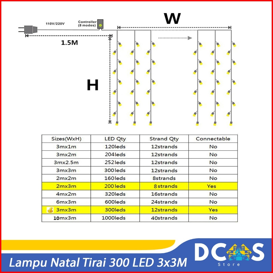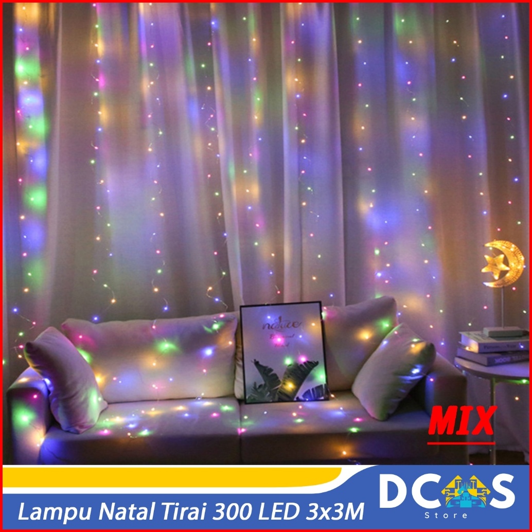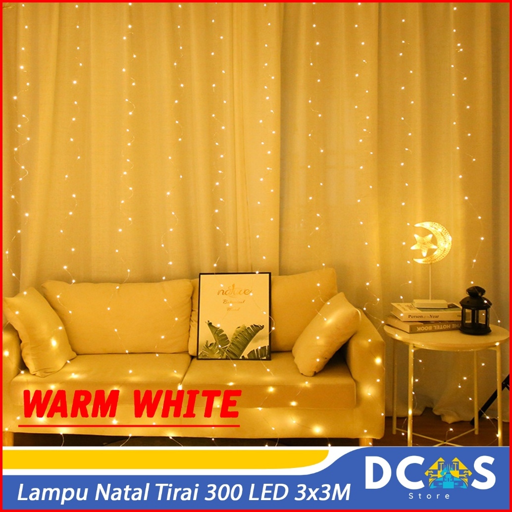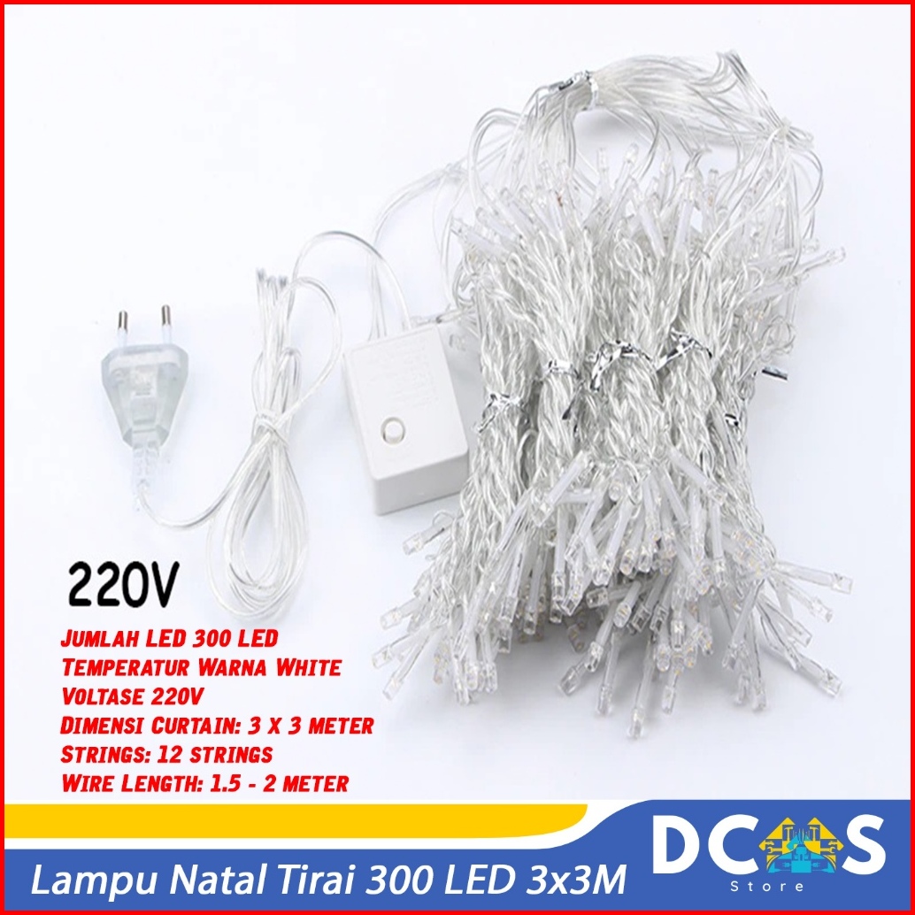 Lampu Natal Tirai Daylight 300 Led 3x3 M Curtain Light Lamp Waterproof Lampu Tirai Natal 3x3 Meter Lampu Natal Lampu Kaf