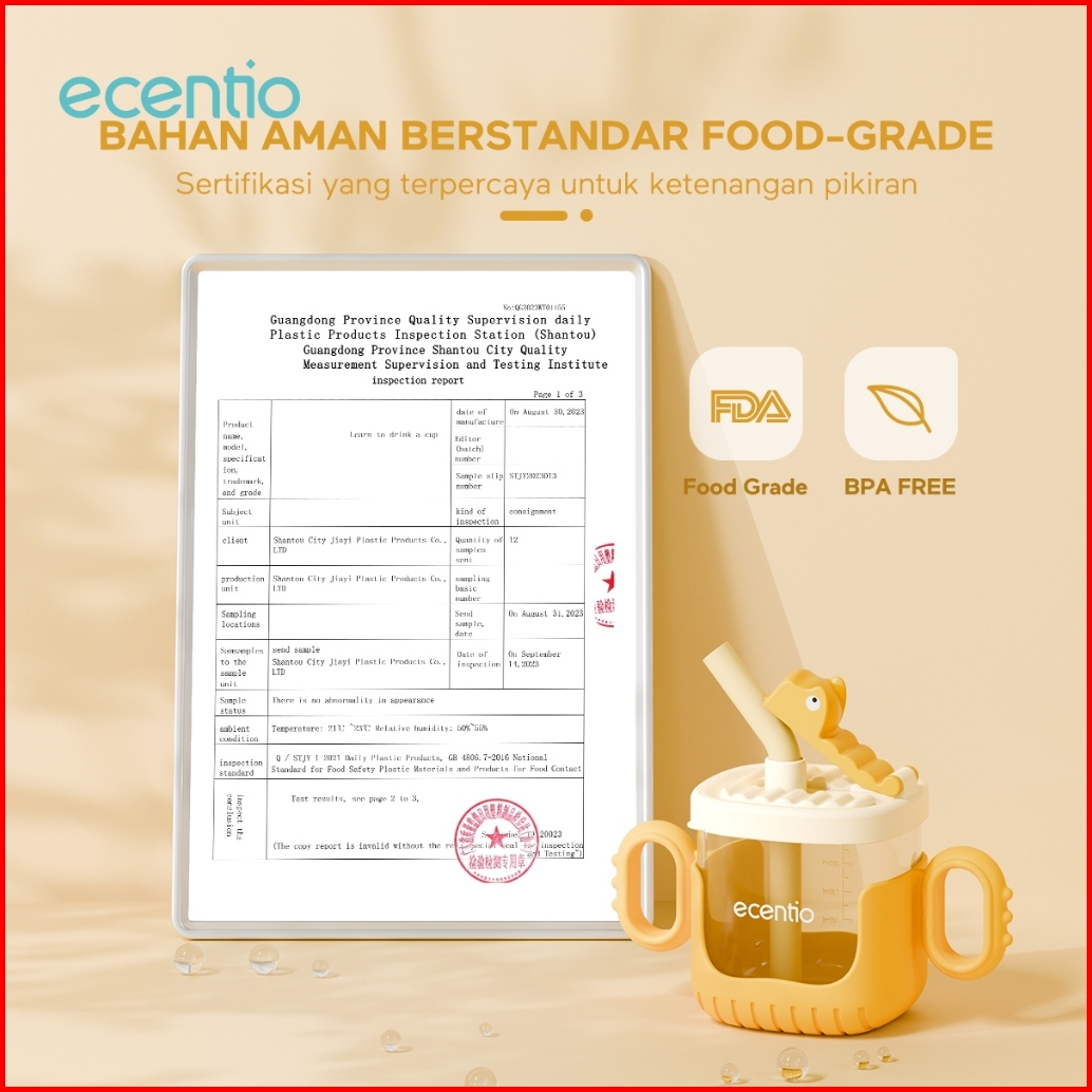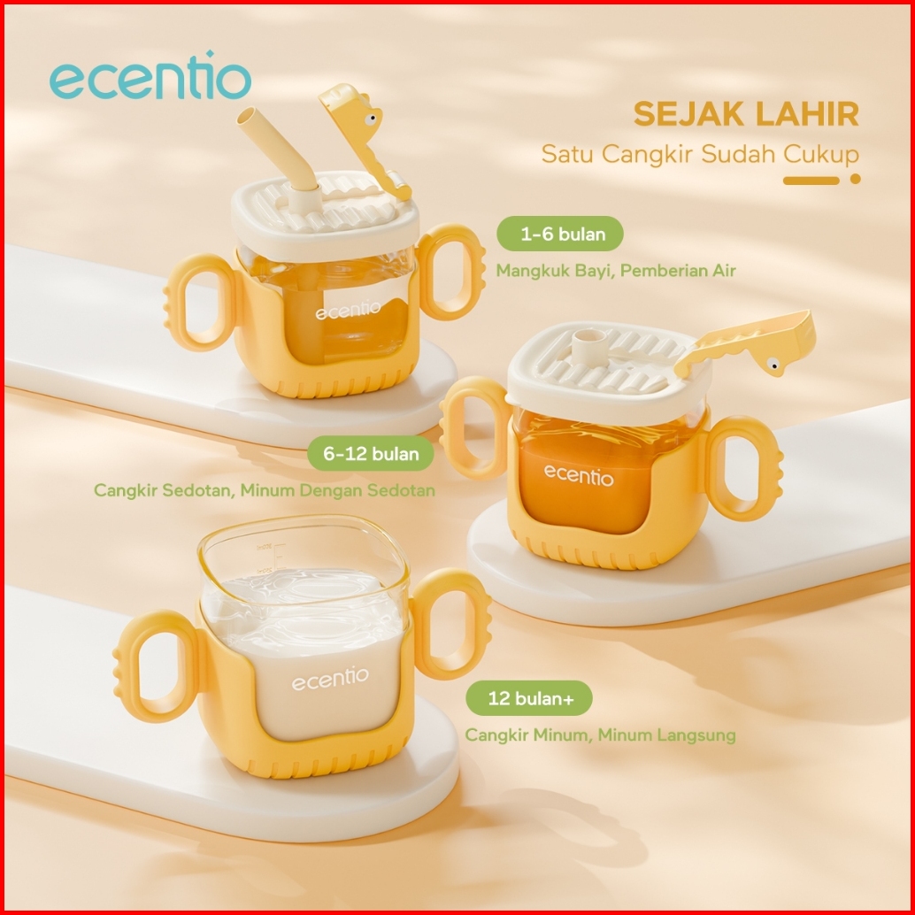 Ecentiokids Tempat Minum Straw Silikon Bayi Training Cup 300ml Gelas Susu Anak Sippy Cup Bebas Bpa