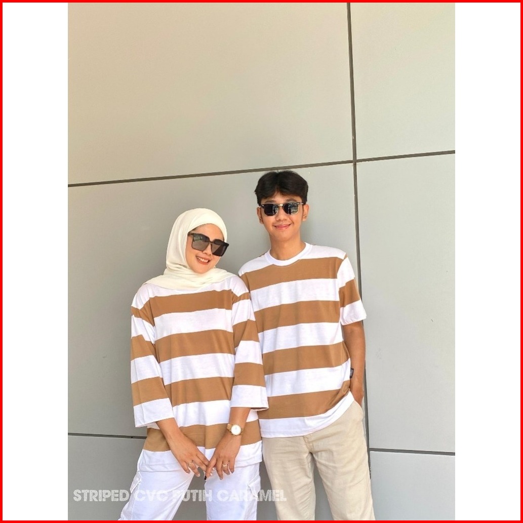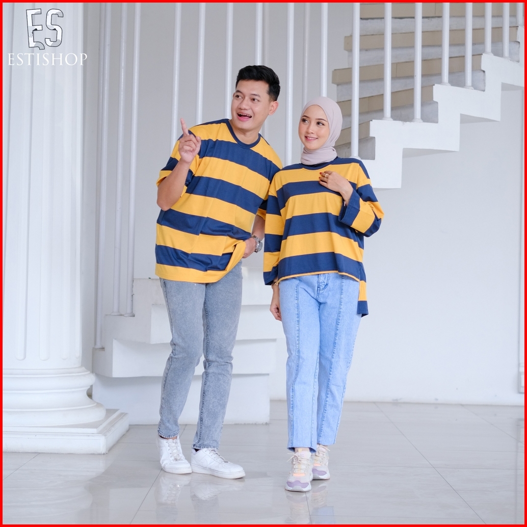 Estishop X Dinoday Atasan Crop Wanita Baju Ibu Kaos Salur Stripe Cewek Cotton 24s Oversize