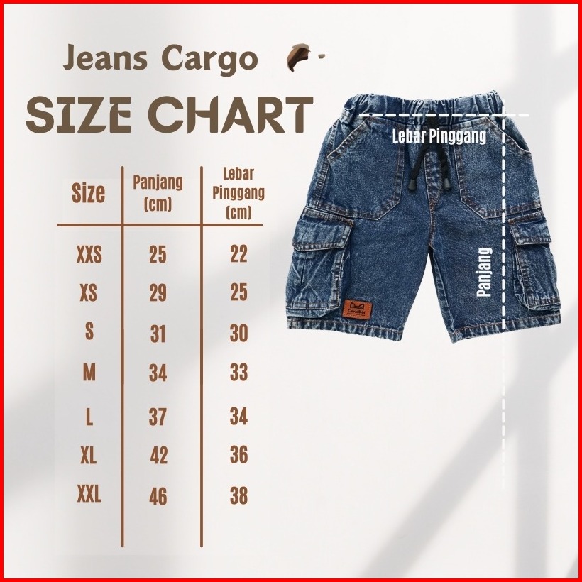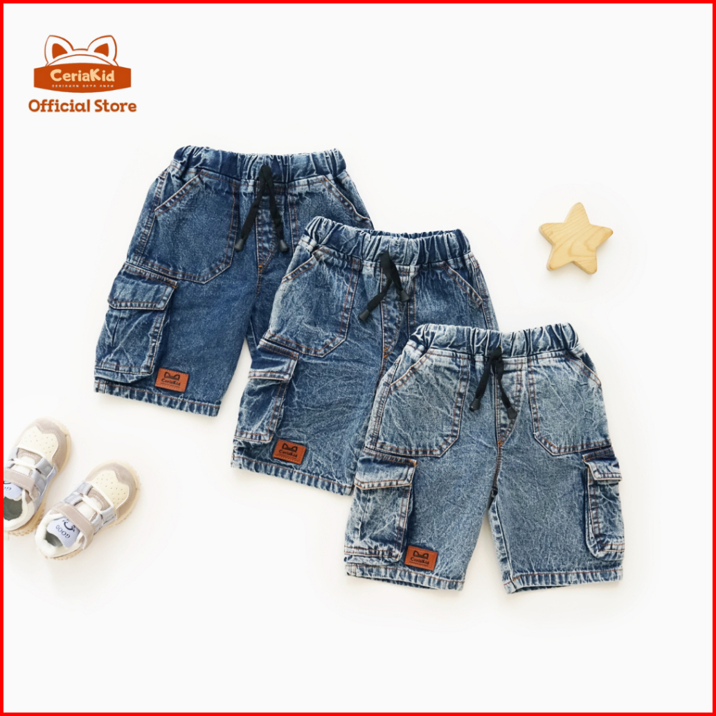 Ceriakid Celana Sontog Cargo Anak Jeans Denim Maldive 0-9 Tahun