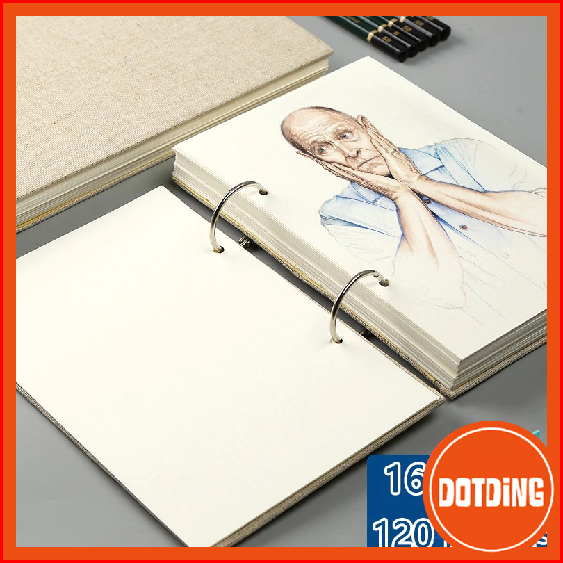 Retro Spiral Sketchbook Buku Gambar Sketsa 60 Lembar Linen Hardcover 120 Pages 160gsm Refillable Notebook For Art Suppli