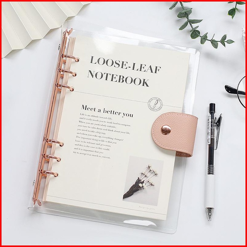 Miloli Elegant Binder A5 Binder A6 Transparan Binder With Clip Note Book Loose Leaf Rose Binder - E0036