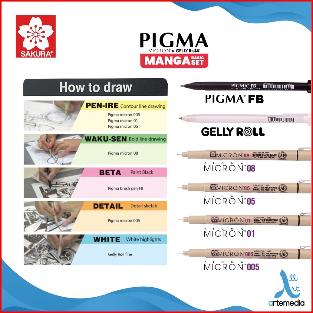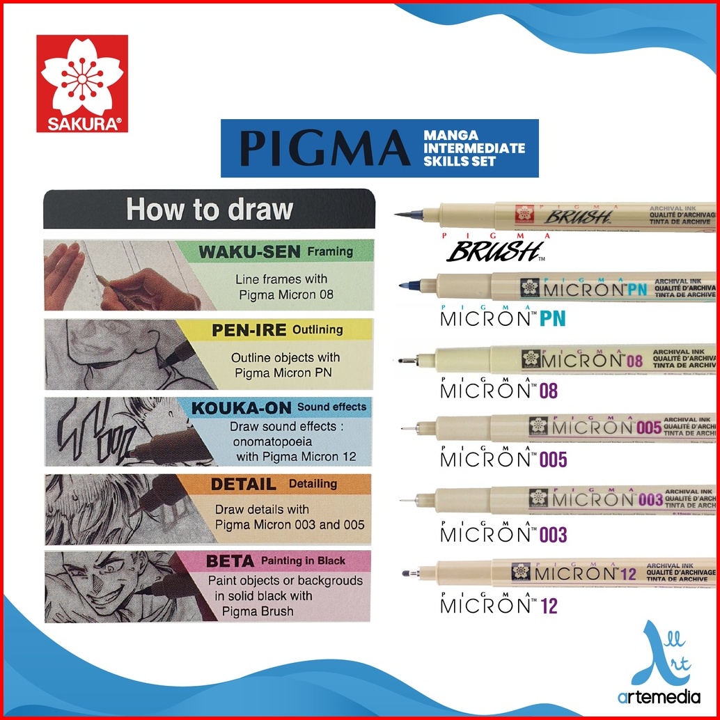 Sakura Pigma Micron Drawing Pen Manga Basic Intermediate Set