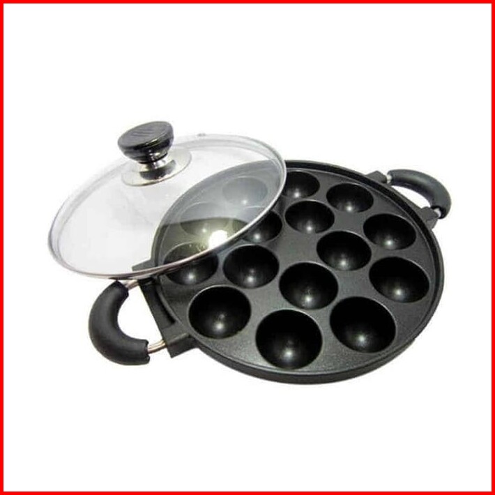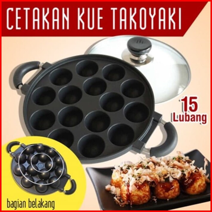 Cetakan Takoyaki - Telur Puyuh - 15 Lubang - Teflon Tutup Kaca