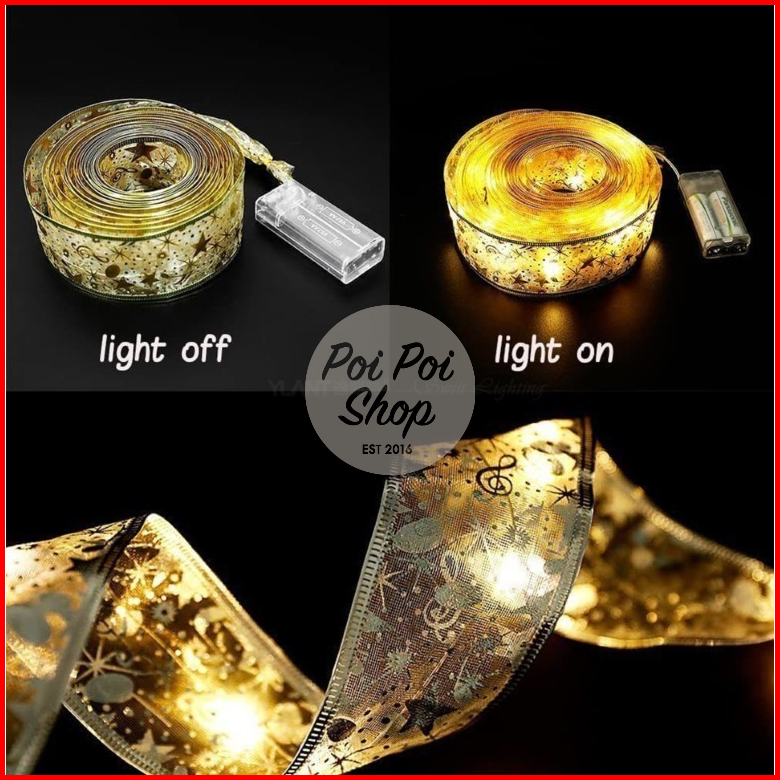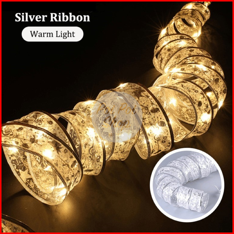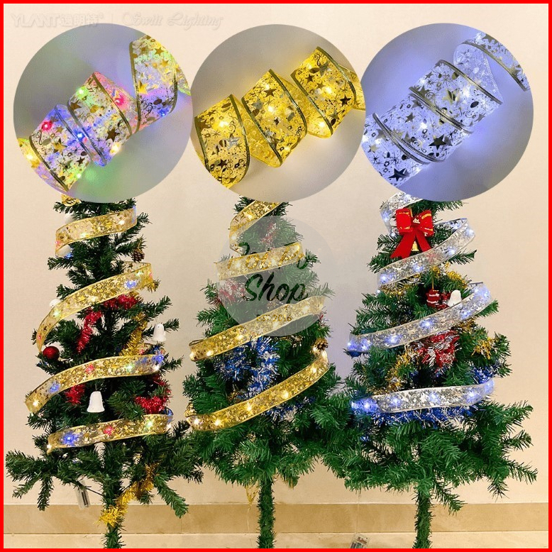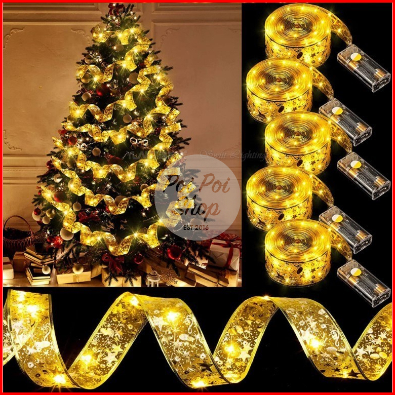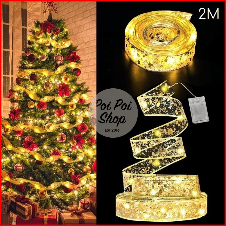 Pita Natal Kawat Lampu Led 2m Hiasan Dekorasi Pohon Natal Dekorasi Kado Pita Parcel Box Kue Christmas Hiasan Natal Dekor