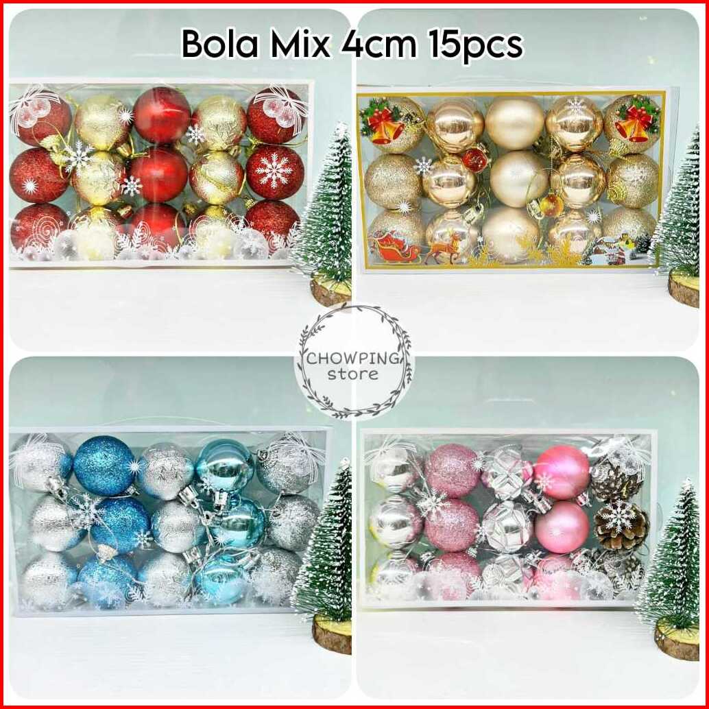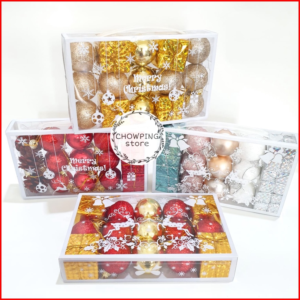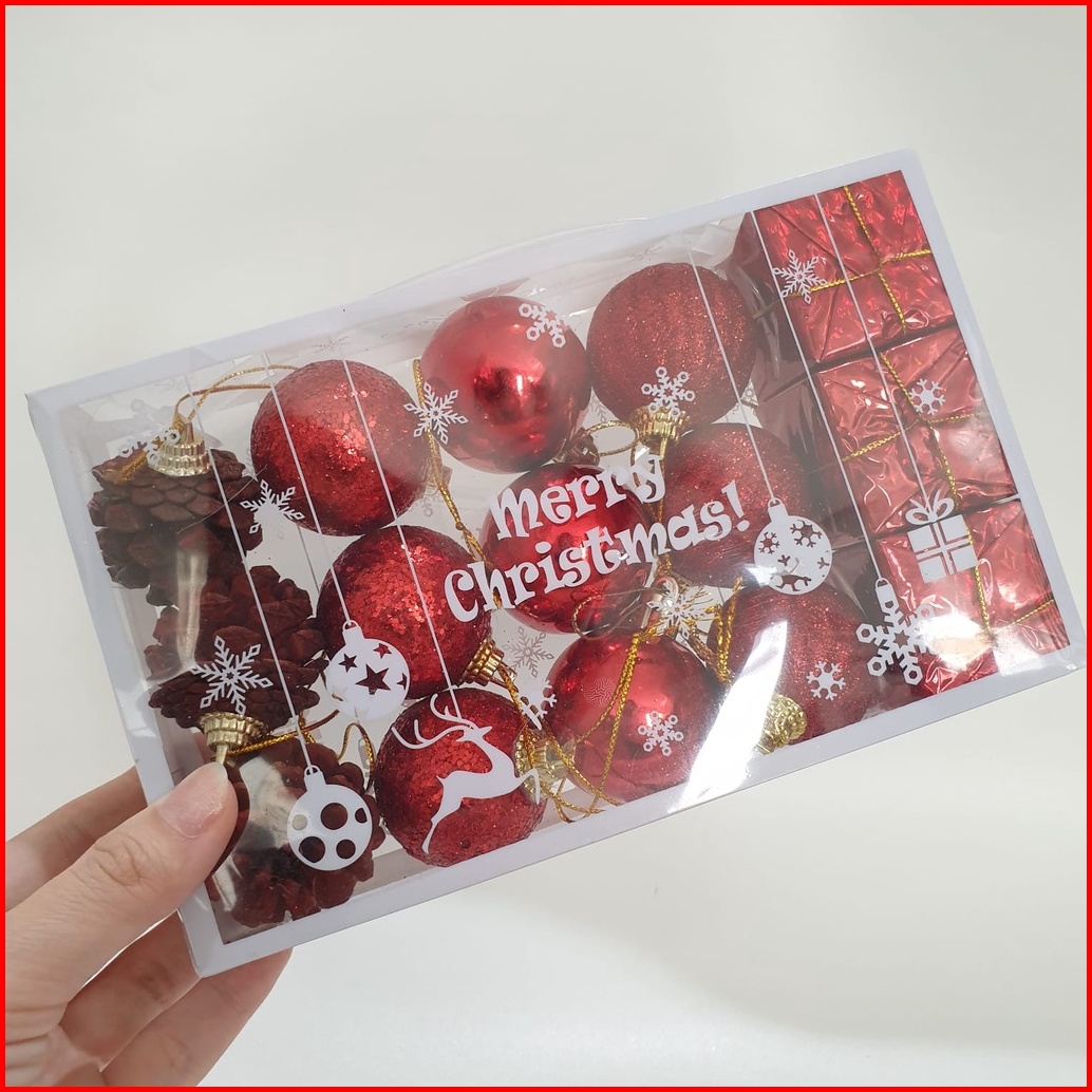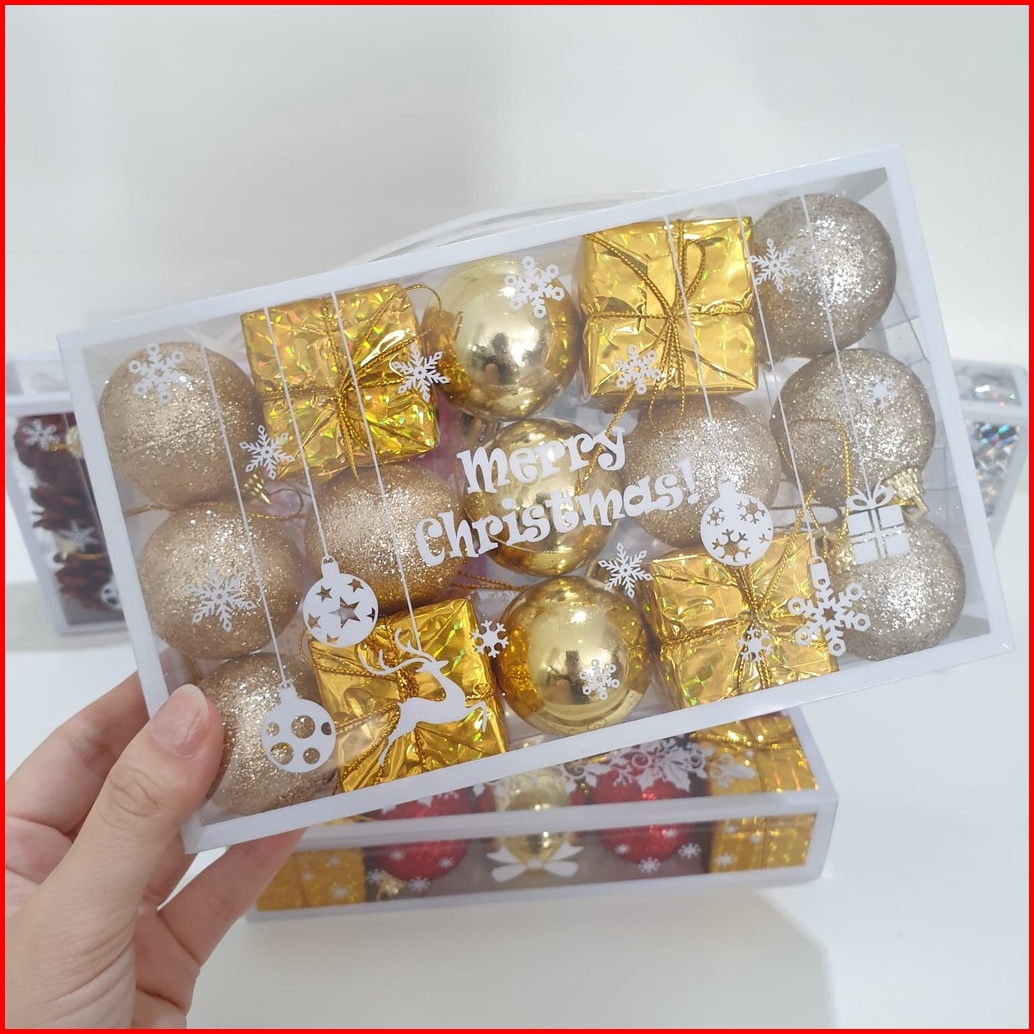 Set 15pcs Gantungan Hiasan Aksesoris Ornamen Pohon Bola Natal Box