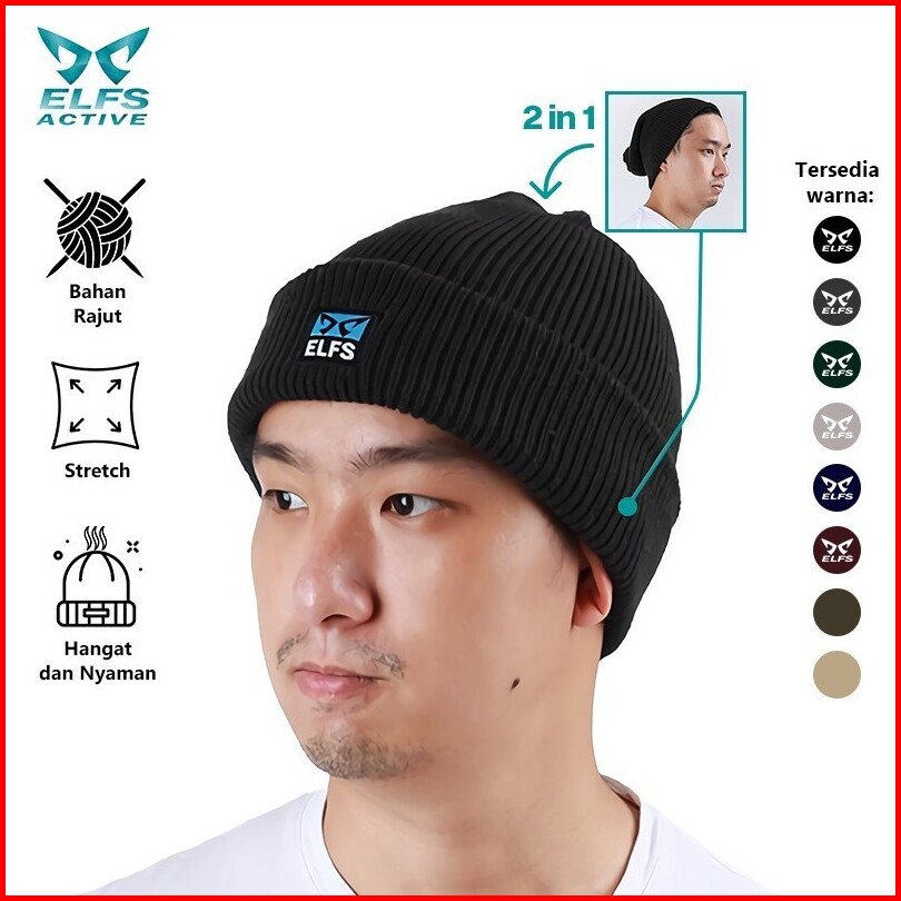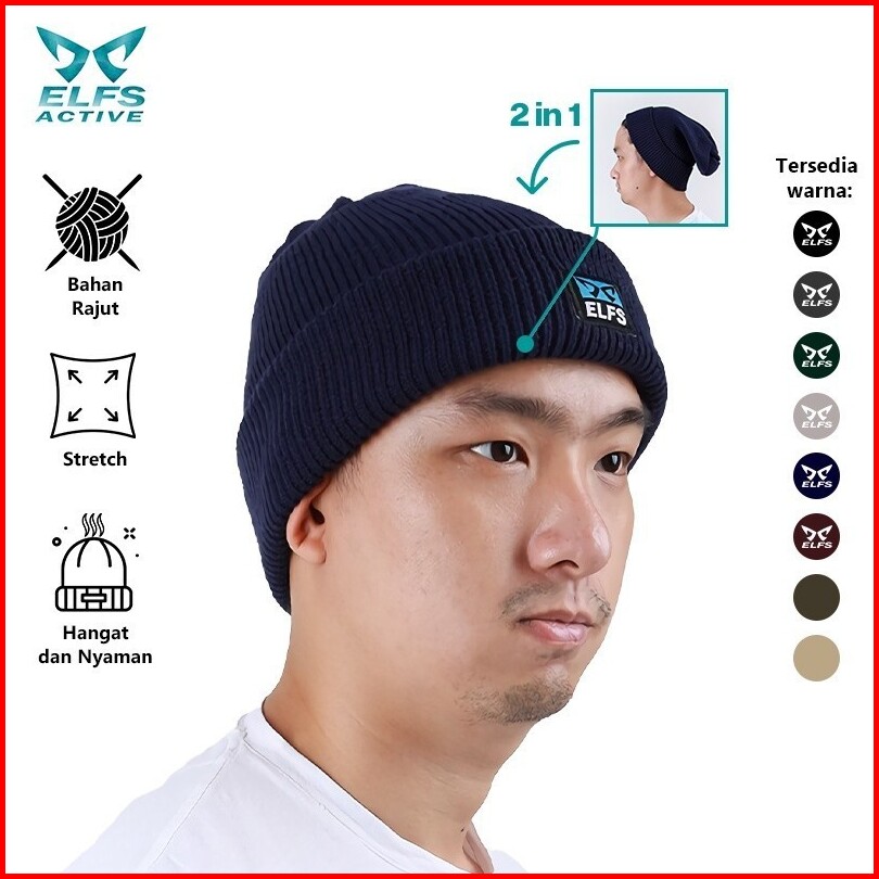 Elfs Active Topi Kupluk Pria Wanita Rajut Polos Beanie Hat Hiking Camping Outdoor