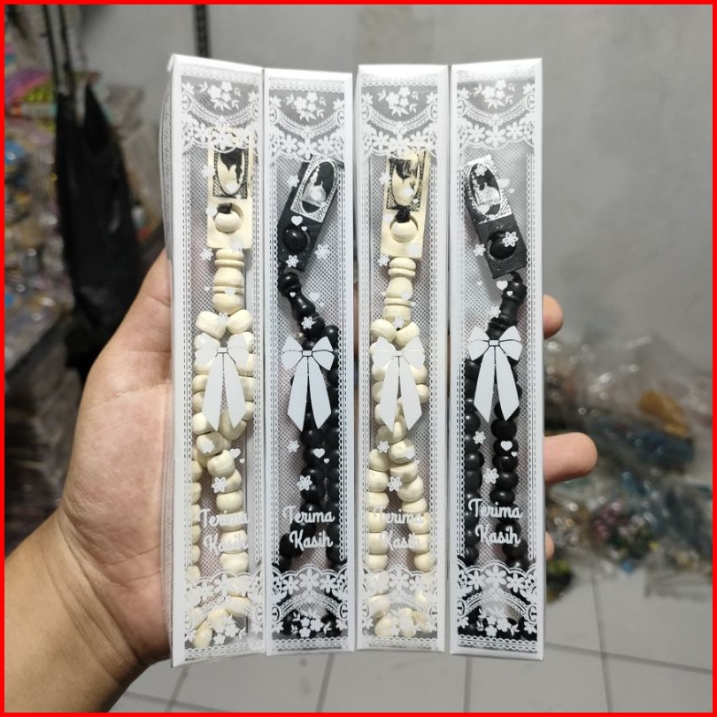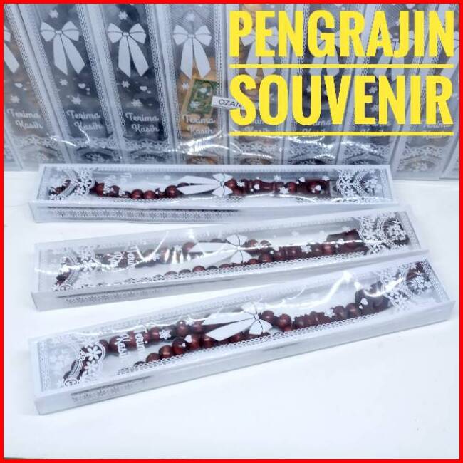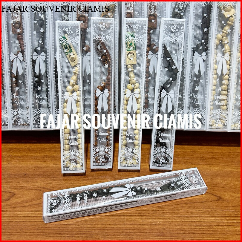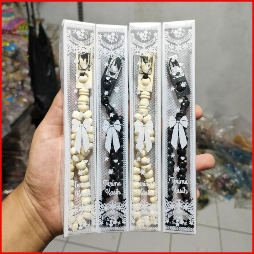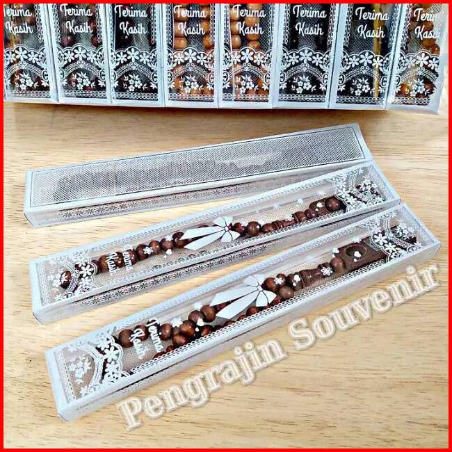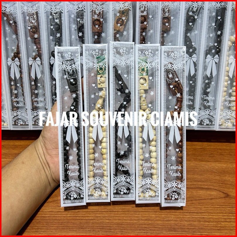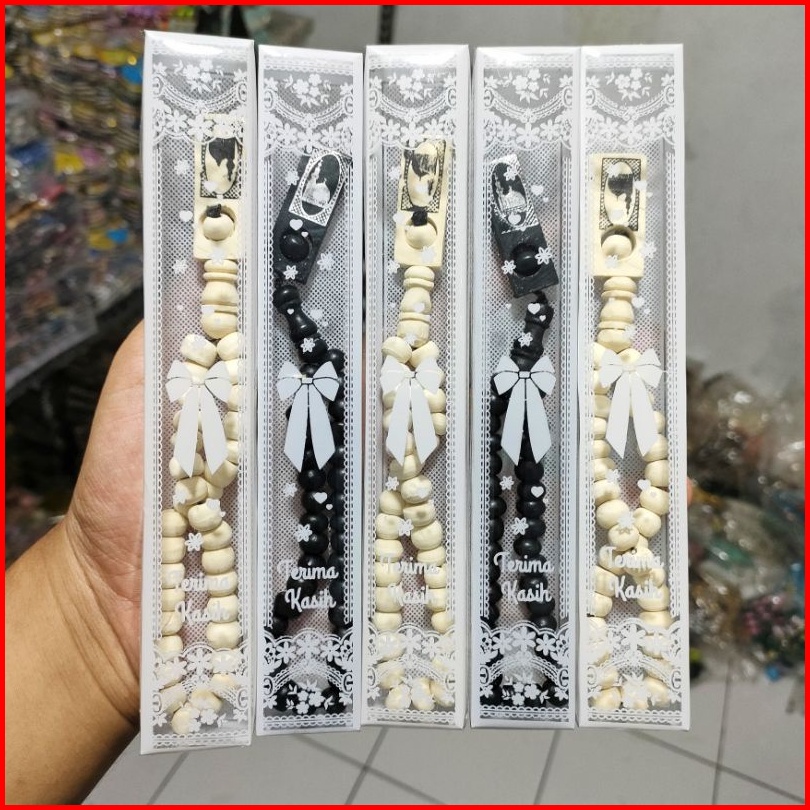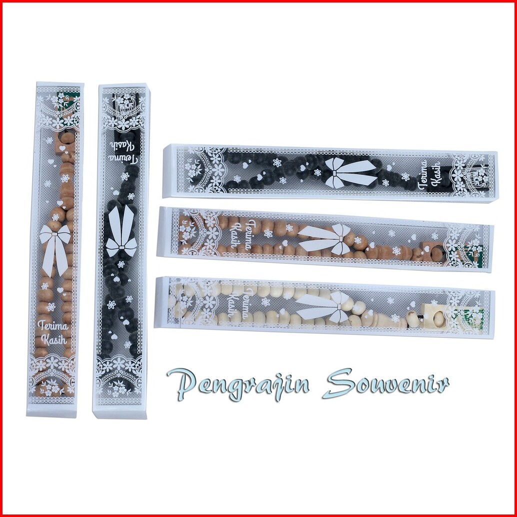 1 Pack 50 Pcs Souvenir Pernikahan Tasbih Kayu 33 Butir Kemas Mika Corak