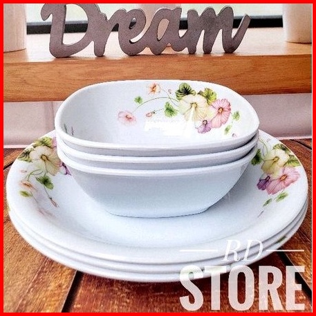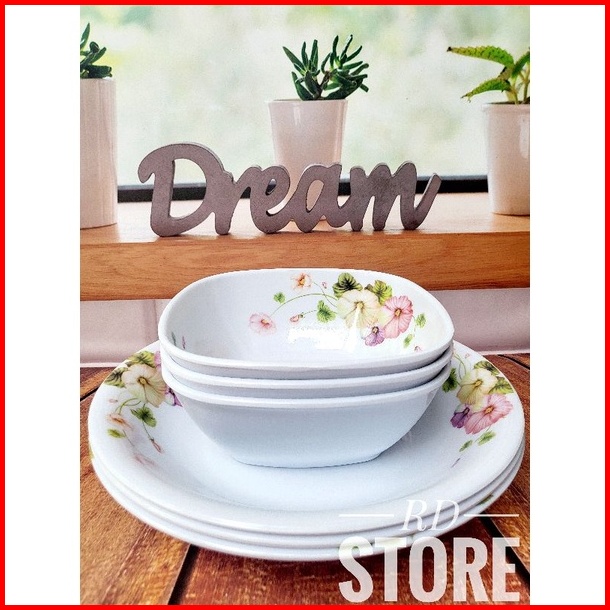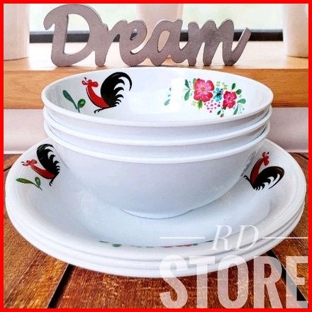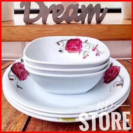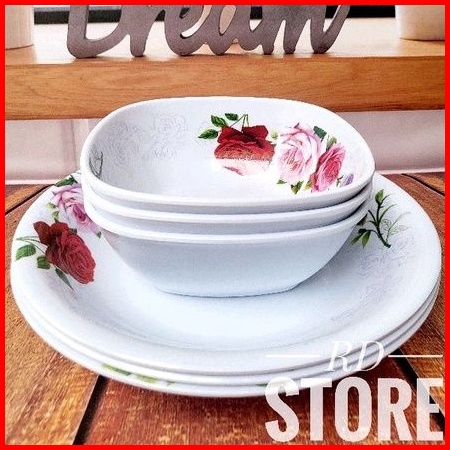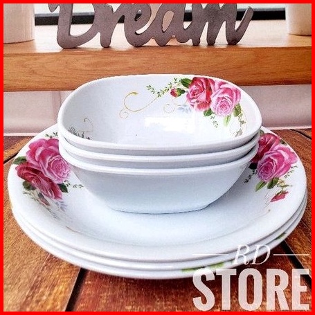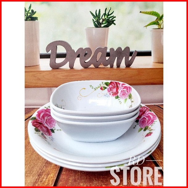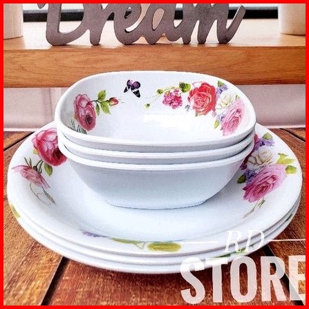 Promo 6.pcs Isi 3.piring Makan Dan 3.mangkok Sayur Bahan Melamine Motif Tebal Dan Kuat