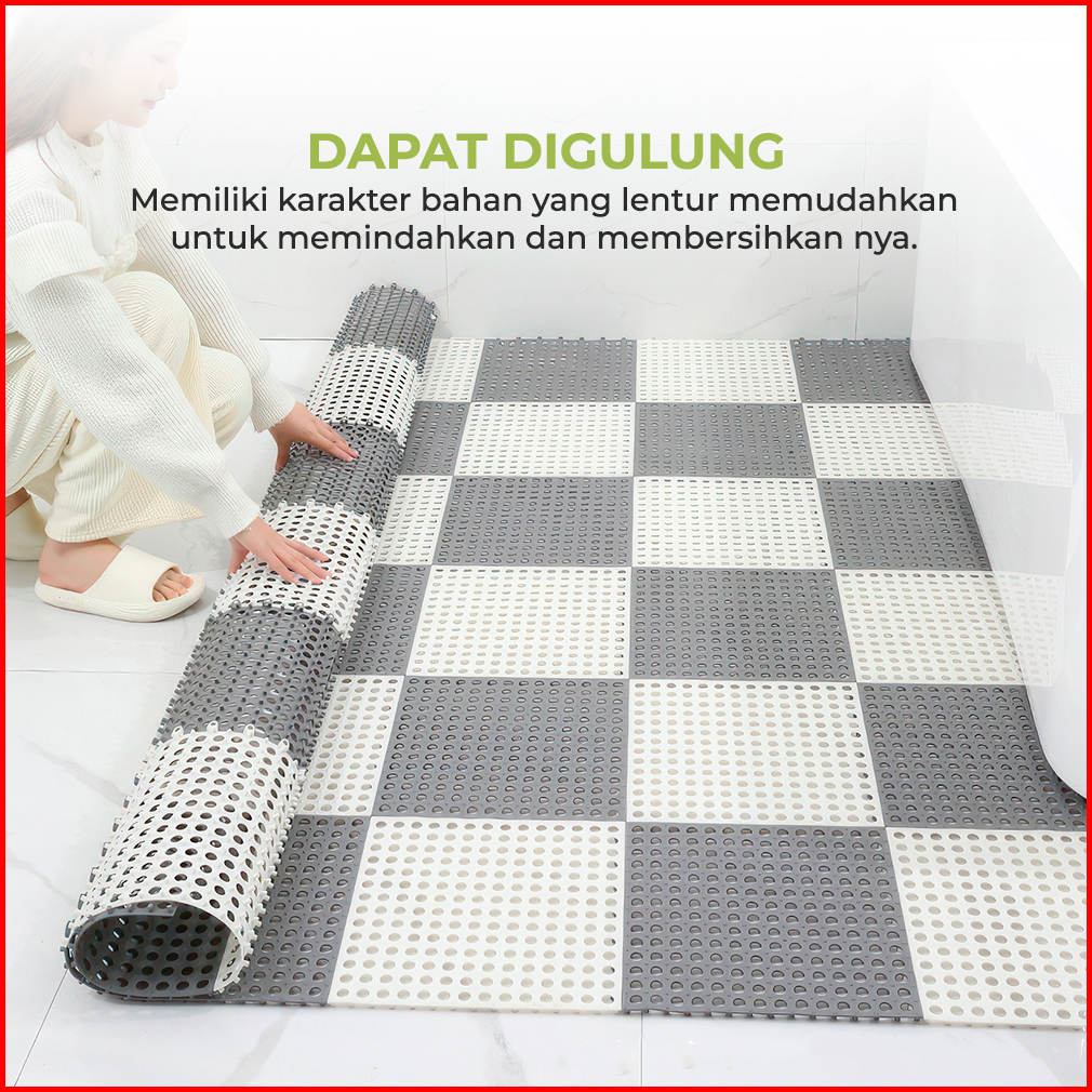 Paket 10 Pcs Karpet Kamar Mandi Anti Slip Polkadot 30cm X 30cm Keset Lantai Alas Anti Licin Dapur Mat Non Slip