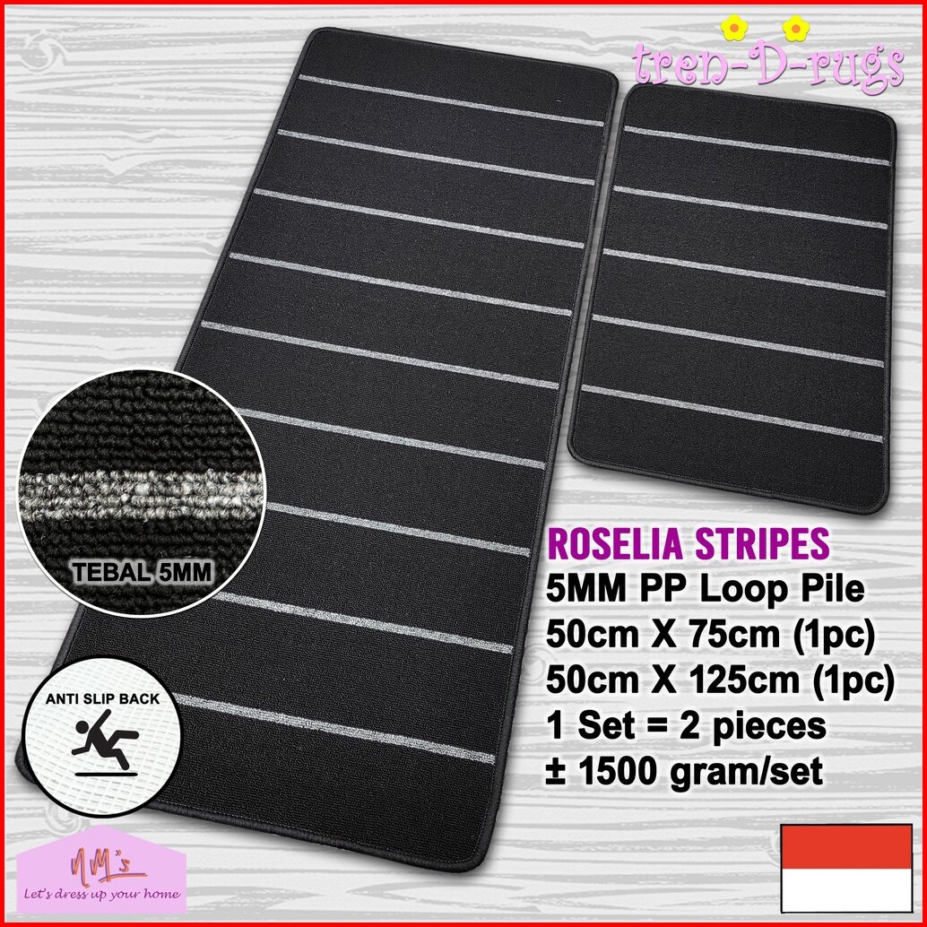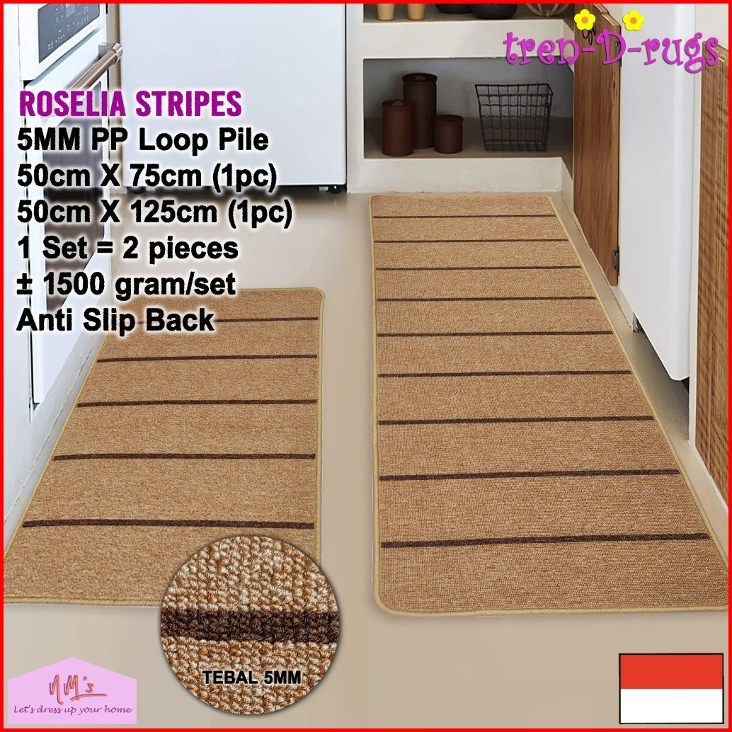 Tren-d-rugs Keset Kaki Stripes Dapur Panjang Runner Lorong Alas Ruang Tidur Salur Anti Slip 1 Set Isi 2 Pcs-nms