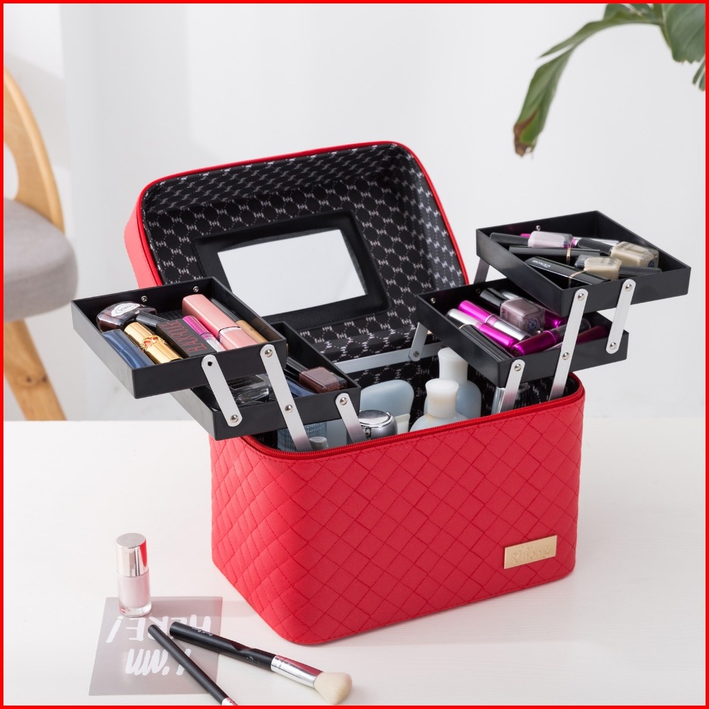Kotak Makeup Box Makeup Beauty Case Tempat Kosmetik Kotak Cek Video Waterproof Top372