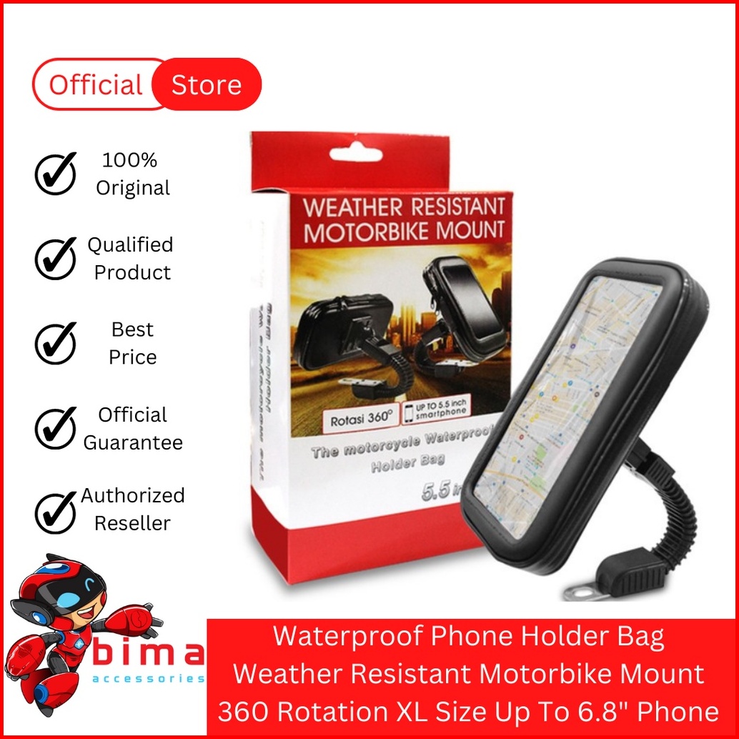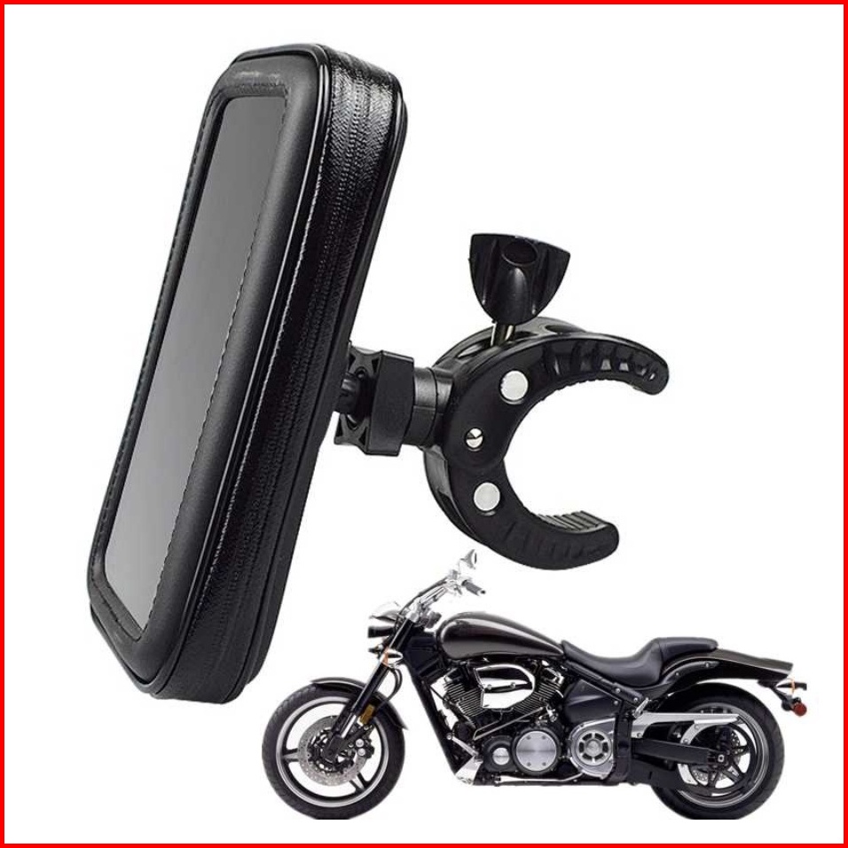 Holder Hp Motor Besi Waterproof Di Spion Stang Plus Sarung Anti Air Untuk Ukuran Hp Sampai 6.9