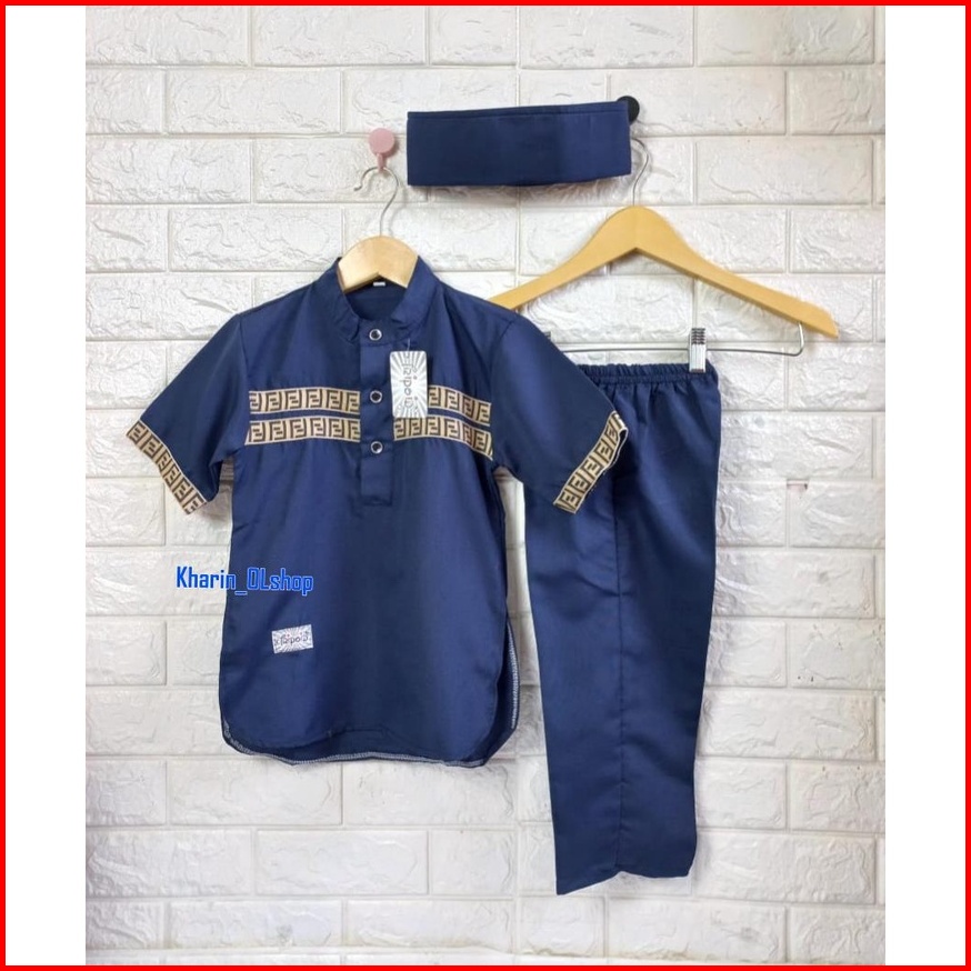 Kharin Olshop Baju Anak Laki Setelan Koko Anak Usia 1-12 Tahun Warna Navy Bahan Katun Poplin Premium