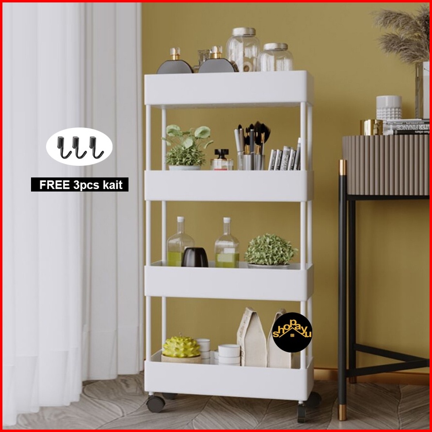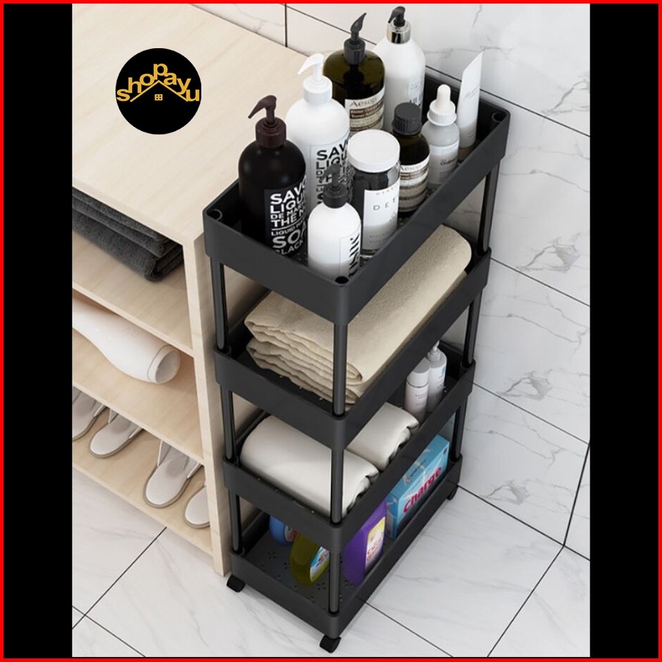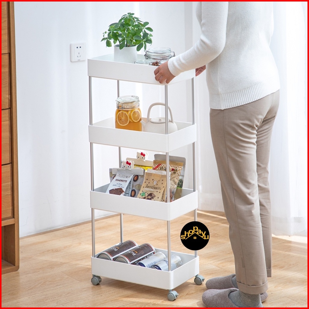 Rak Troli Square Plastik Rak Toilet Rak Kamar Mandi Rak Dapur Serbaguna Rak Susun Portable Roda