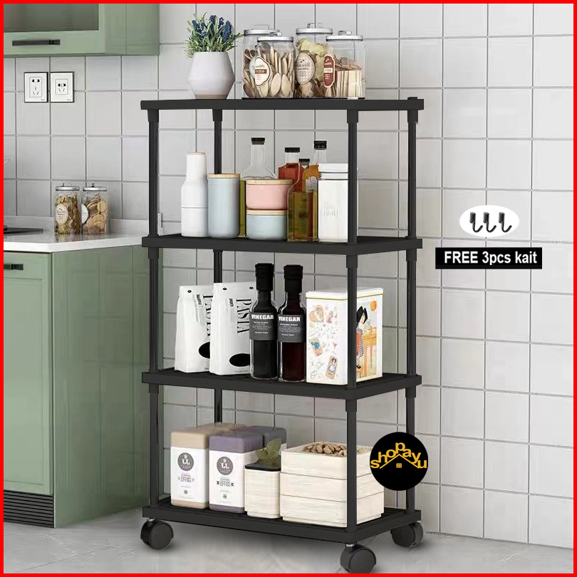 Rak Troli Rak Dapur Serbaguna Rak Susun Plastik 4 Layer