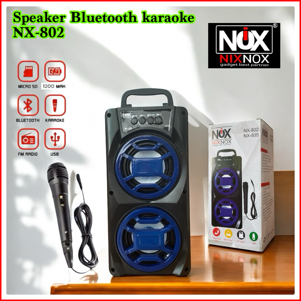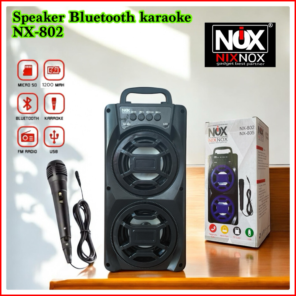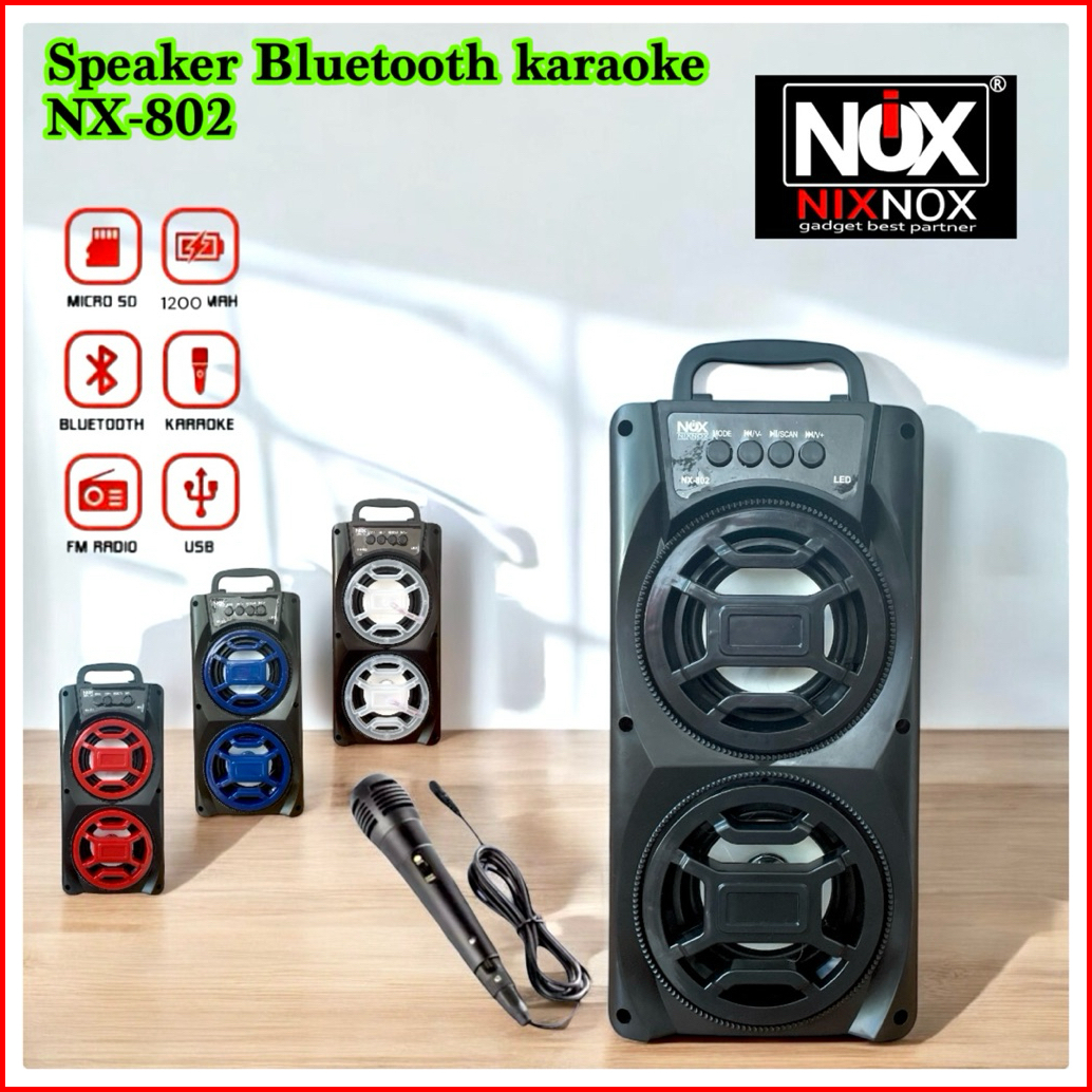 Big Bass Speaker Bluetooth Nixnox Nx-802 Free Mic Speaker Karaokr Termurah Big Bass