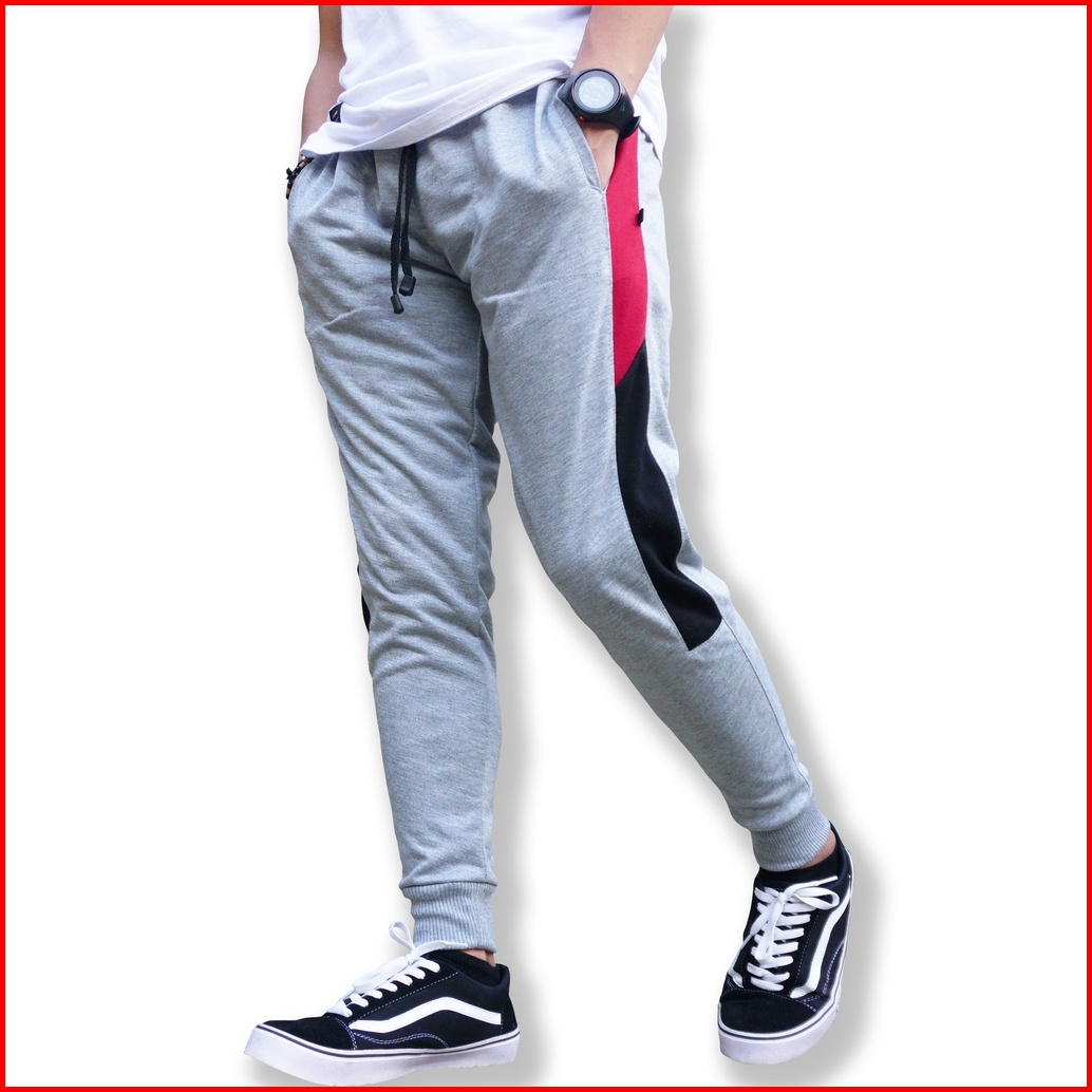 Gracioustyle - Celana Training Pria Ad 918 Hitam List Merah - Olahraga Cowok Gym Premium Panjang Slimfit