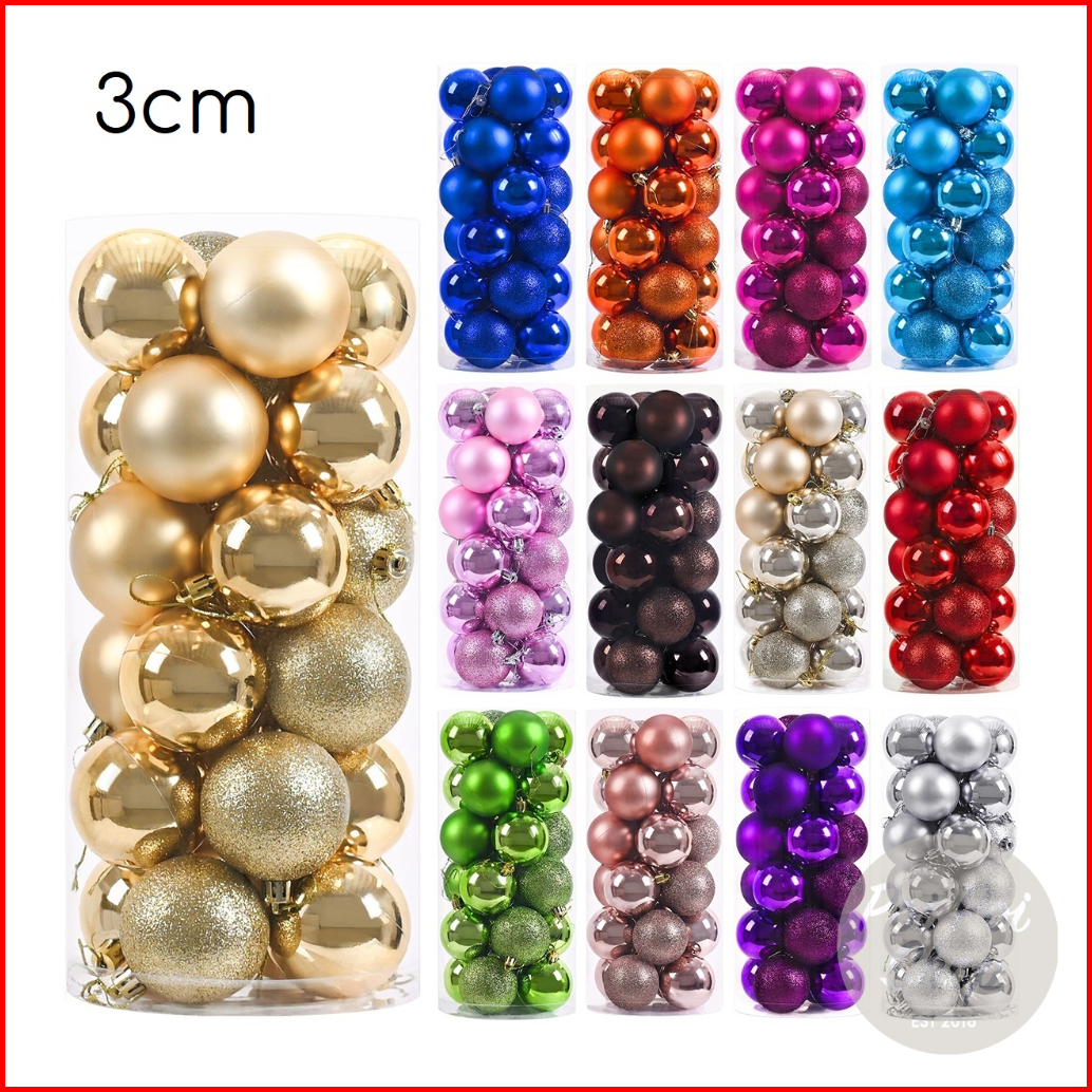 Hiasan Bola Pohon Natal 3cm Isi 24 Bulat Gantungan Dekorasi Ornamen Dekorasi Merry Christmas Tree Dekorasi Kualitas Ting