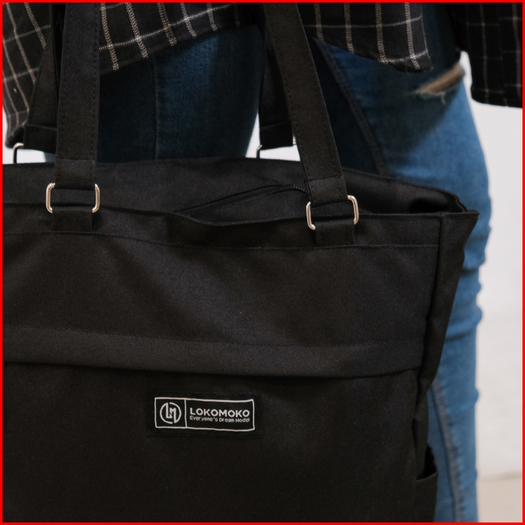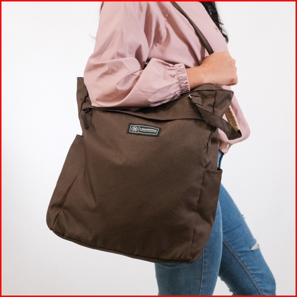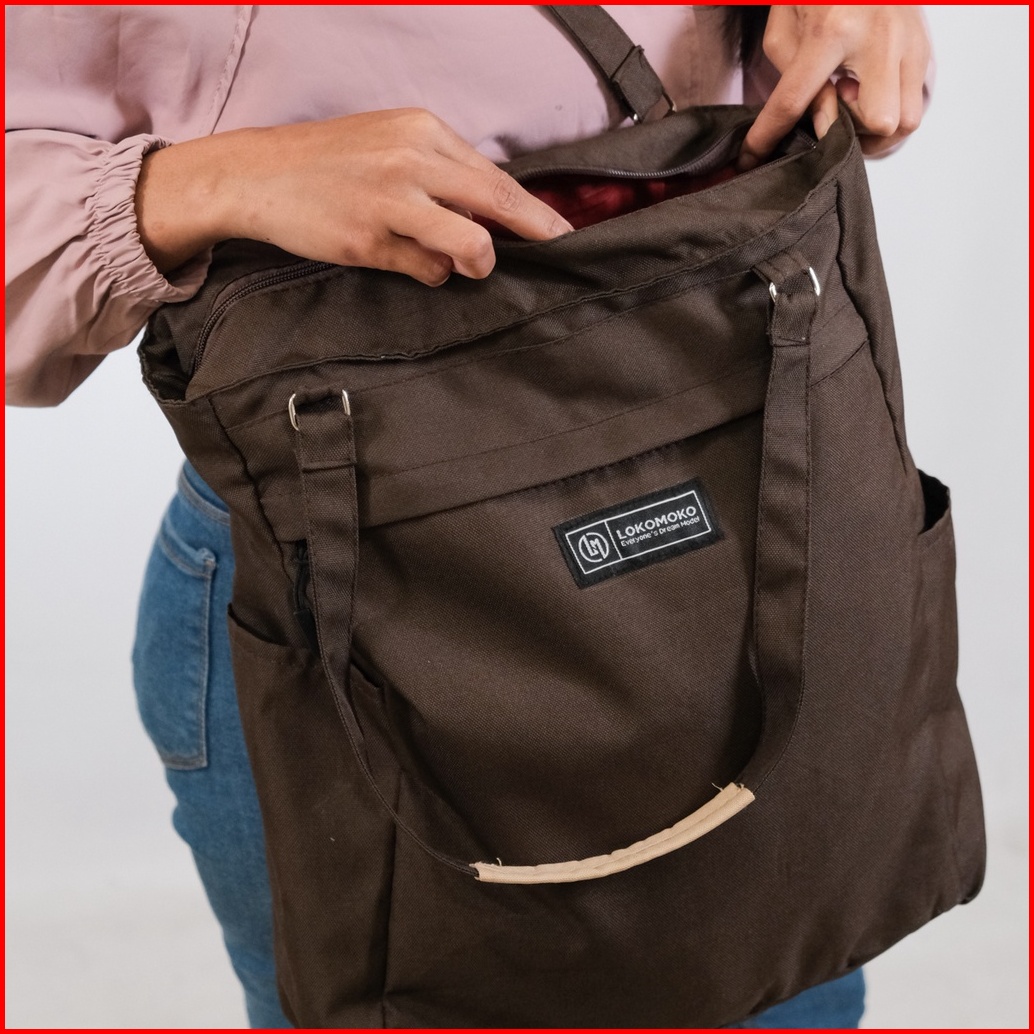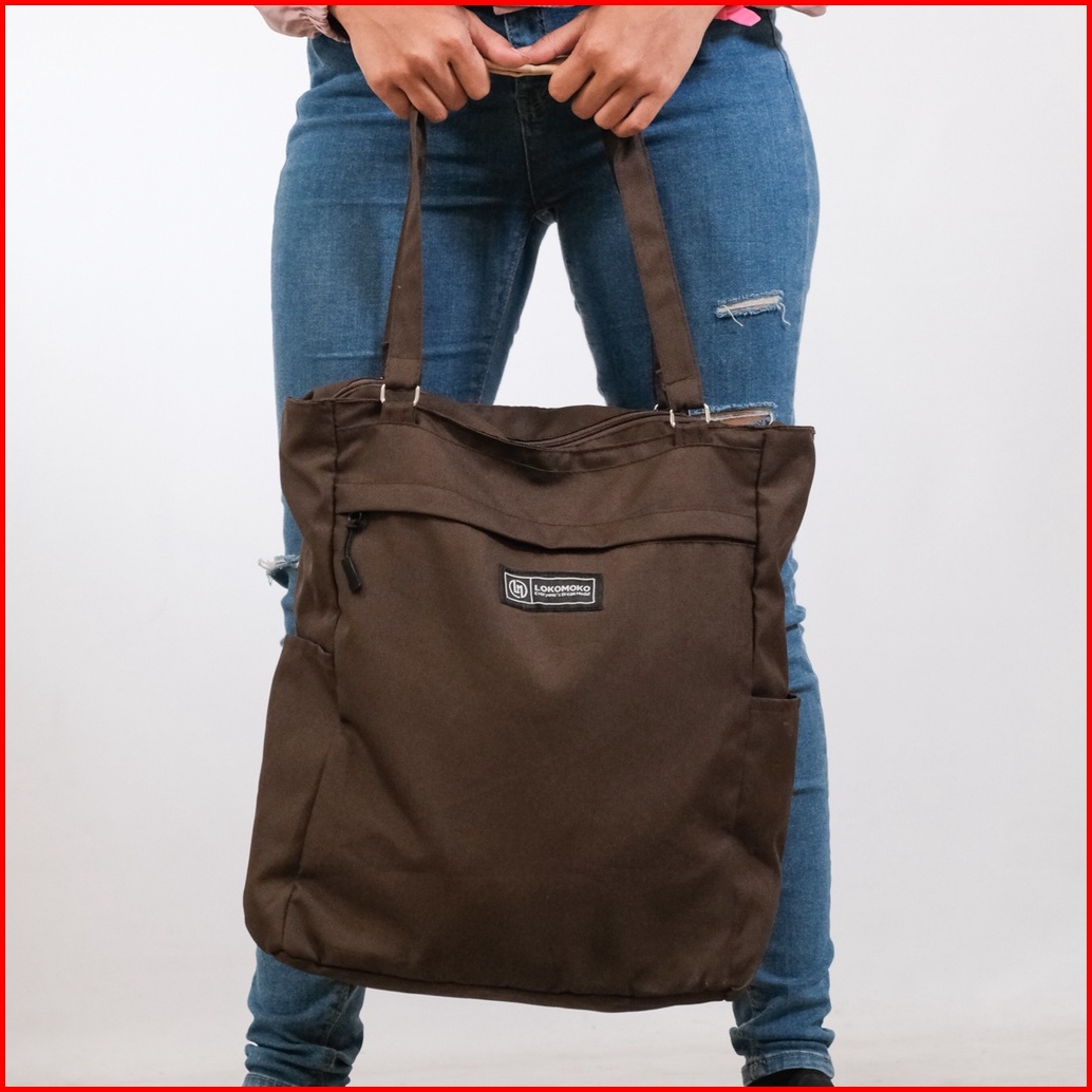 Lokomoko -totebag Resleting Kanvas Marva Coklat Pria Wanita